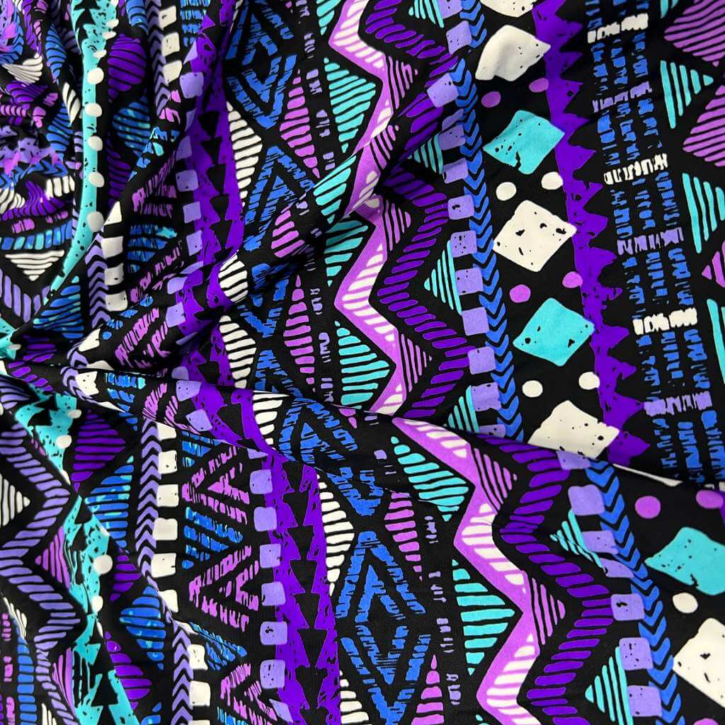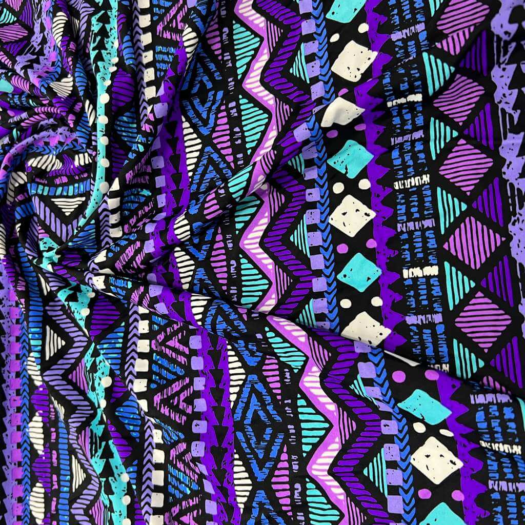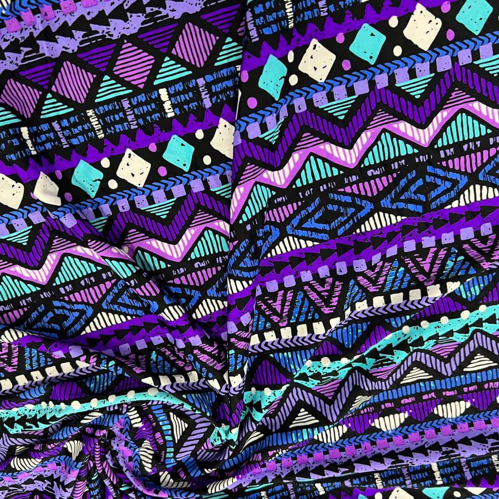 Aztec Ethnic Purple printed Nylon Lycra Spandex Fabric 4 Way Stretch By Yard for swimwear dancewear gymwear sportwear dress