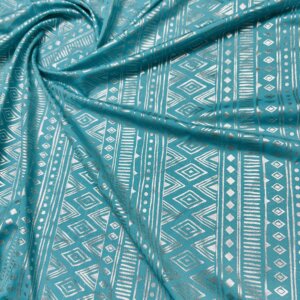 Baby blue and Silver Ethnic Printed Nylon Lycra Spandex Fabric 4 Way Stretch By Yard for swimwear dancewear gymwear sportwear dress (159-3)(18)