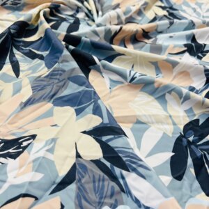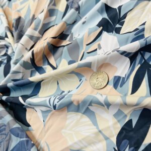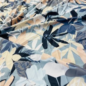 18″ Long / Beige and Gray Leaves Print Nylon Lycra Spandex Fabric 4 Way Stretch By Yard for swimwear dancewear gymwear sportwear dress (203-1)