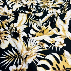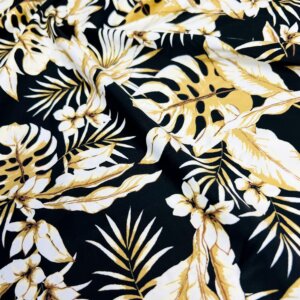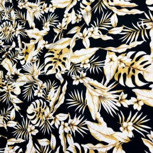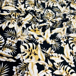 Beige Leaves Black background Print Nylon Lycra Spandex Fabric 4 Way Stretch By Yard for swimwear dancewear gymwear sportwear dress (239-11)