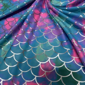 Best Seller Blue And Purple Fish Scale Print fabric 4 way Spandex Lycra Fabric sold by yard for swimwear dancewear dress gymwear (242-2)