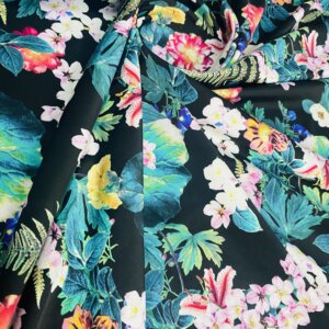 Best Seller Floral Jungle Print 4 Way Stretch Nylon Lycra Spandex Fabric for Swimwear, Dancewear, Dresses by Yard