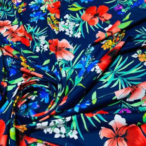Best seller Hawaiian tropical floral multicolor beautiful print Nylon Lycra Spandex Fabric 4 Way Strech by yard (243-4)