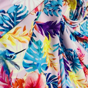 Best Seller Hawaiian Tropical Floral Print Nylon Lycra Spandex Fabric 4 Way Stretch by Yard for swimwear dancewear dress gymwear (205-7)