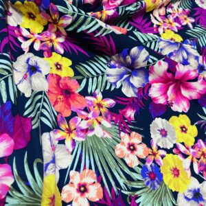 Best Seller Hawaiian Tropical Floral Print Nylon Lycra Spandex Fabric 4 Way Strech by Yard for swimwear dancewear dress gymwear (242-13)