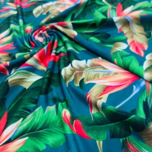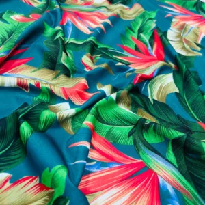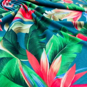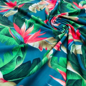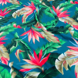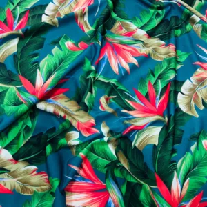Birds of Paradise Blue background Print Nylon Lycra Spandex Fabric 4 Way Strech by Yard for swimwear dancewear dress gymwear
