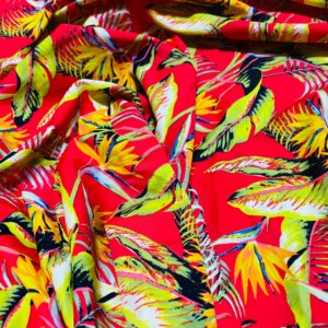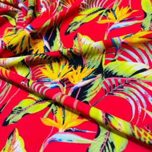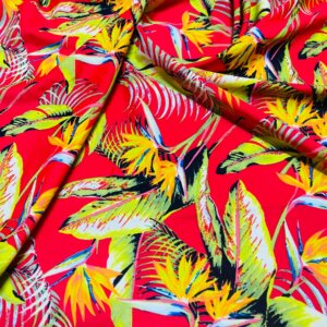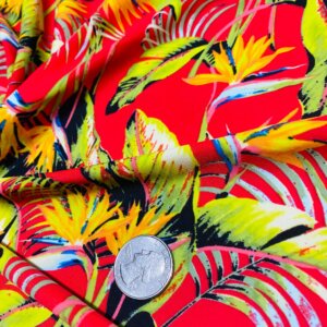 Birds of Paradise Flowers with Palms Print Nylon Lycra Spandex Fabric 4 Way Strech by Yard for swimwear dancewear dress gymwear (157-7)