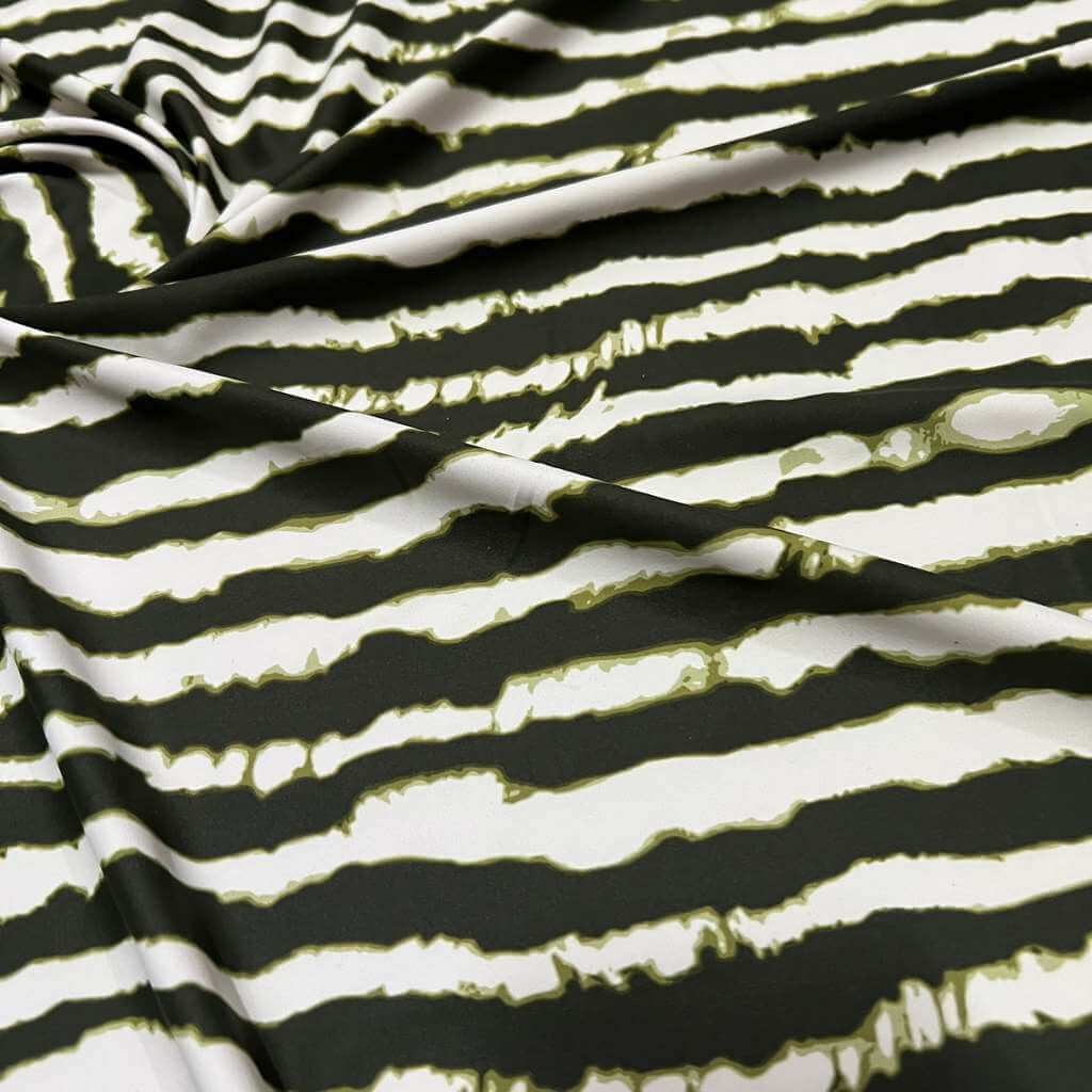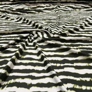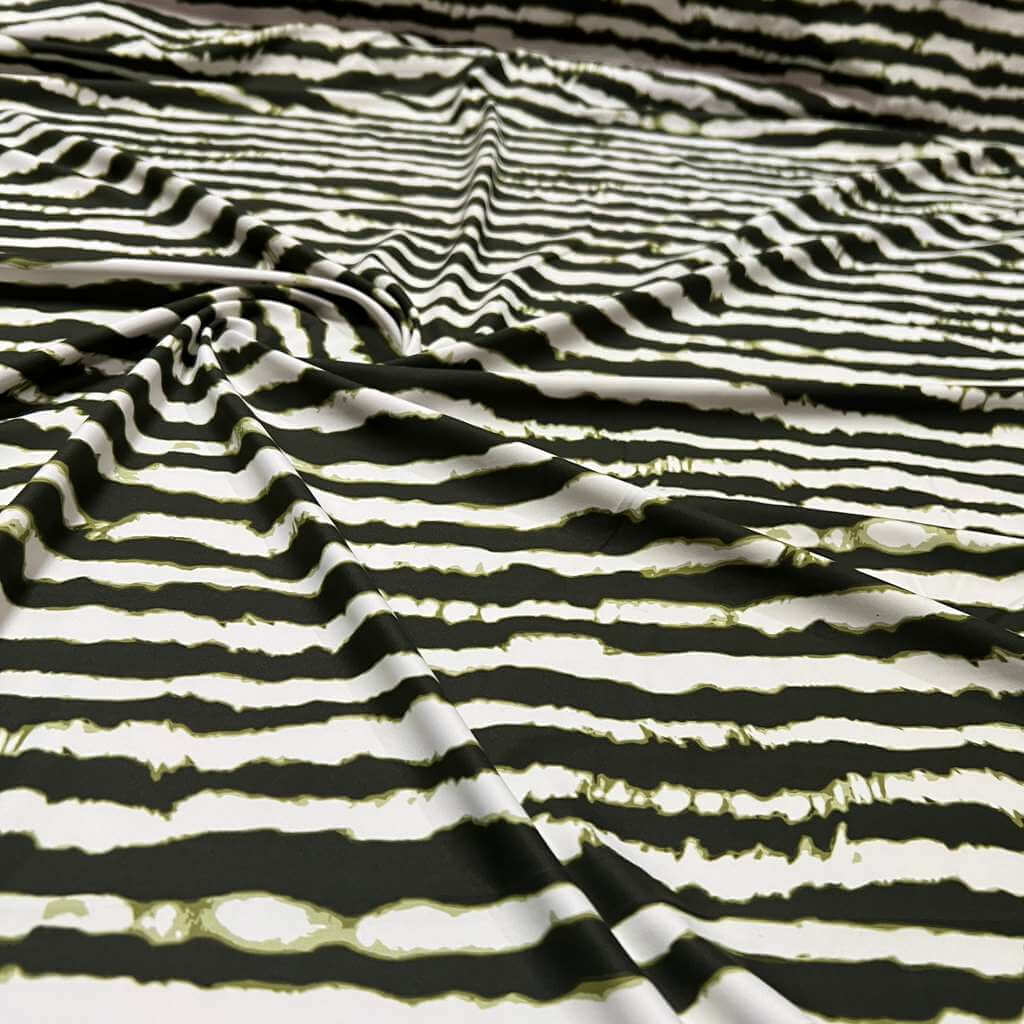 Black and Green Lines Print Nylon Spandex Fabric 4 Way Stretch for swimwear dancewear gymwear sportwear dress skirt (204-1)(17)