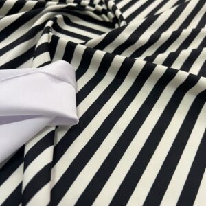 Black and White Cream Stripes Print Nylon Lycra Spandex Fabric 4 Way Stretch by Yard for swimwear (158-1)