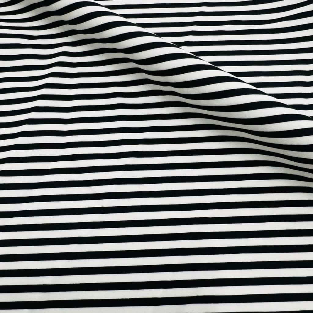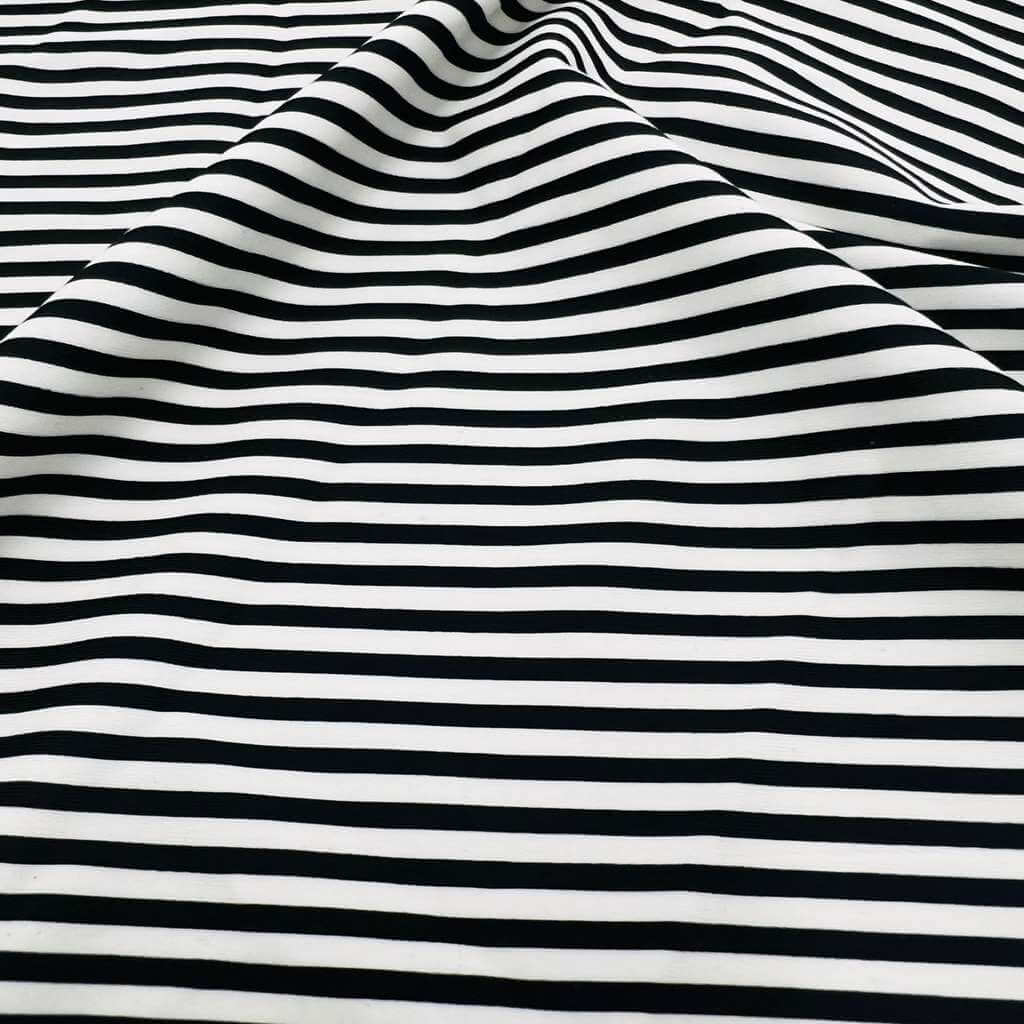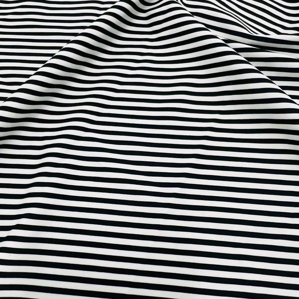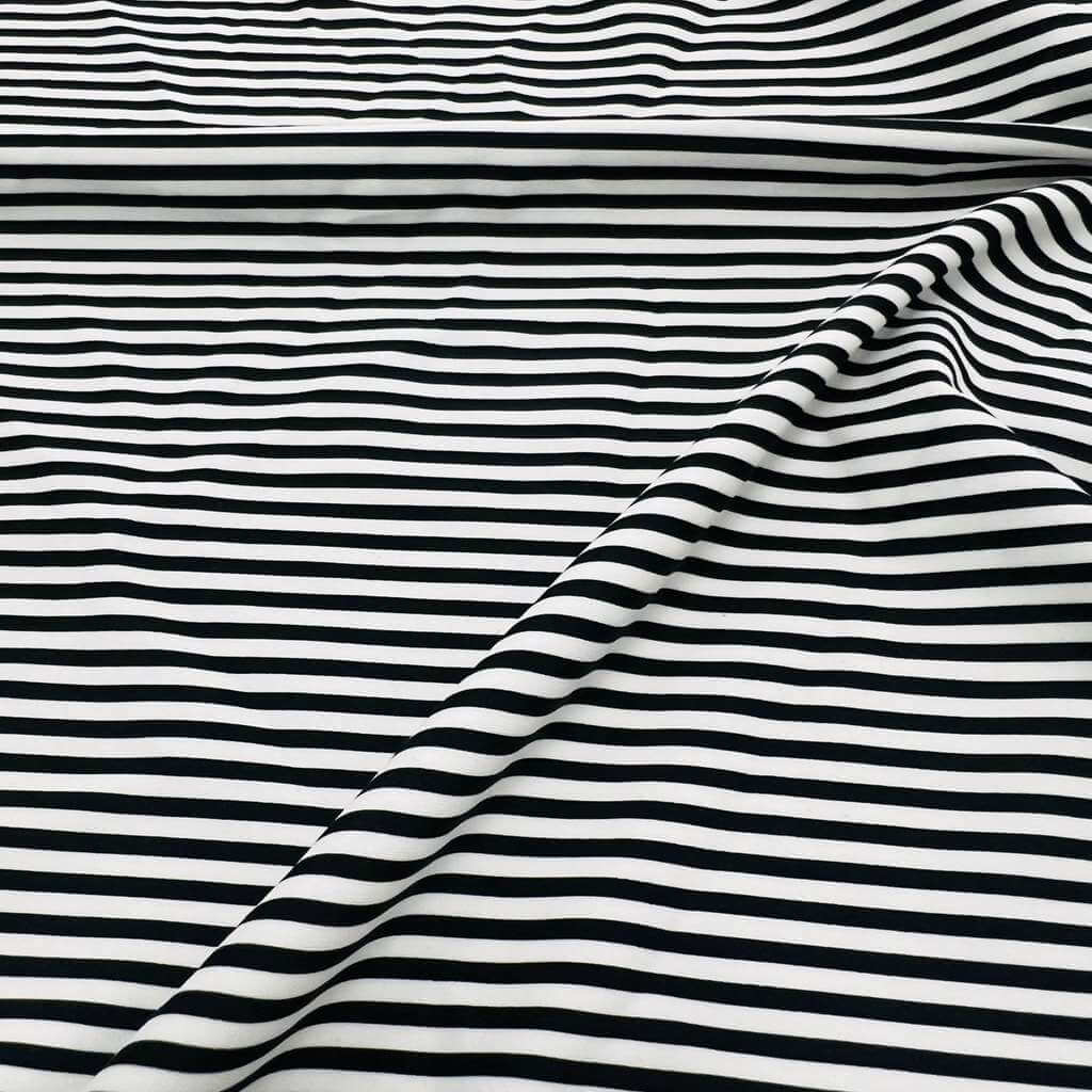 Black and White Fine Stripes Print Nylon Spandex Fabric 4 Way Stretch for swimwear dancewear gymwear sportwear dress skirt (204-7)(24)