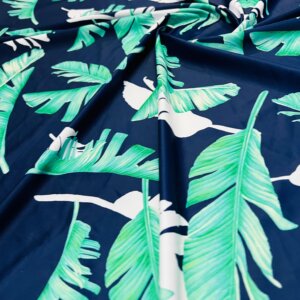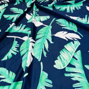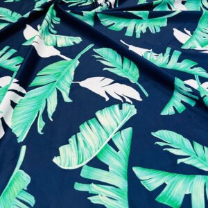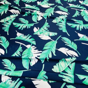 Black and White Leaves Green Background Print Nylon Lycra Spandex Fabric 4 Way Stretch By Yard for swimwear dancewear gymwear sportwear dress (203-10)