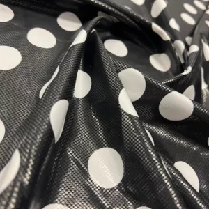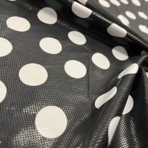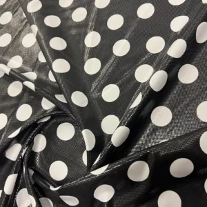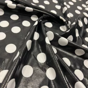 You are viewing Black and White Polka Dots Metallic Nylon Lycra Spandex 4 Way Stretch By Yard For Swimwear Dancewear