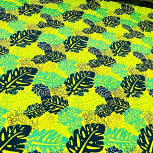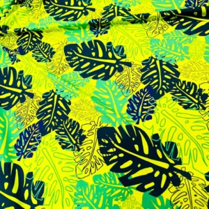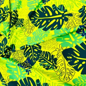 Black Leaves Neon Green background Print Nylon Spandex Fabric 4 Way Stretch By the Yard for swimwear dancewear gymwear sportwear dress skirt (239-7)