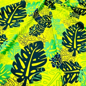 Black Leaves Neon Green background Print Nylon Spandex Fabric 4 Way Stretch By the Yard for swimwear dancewear gymwear sportwear dress skirt (239-7)