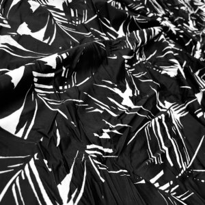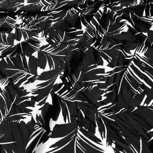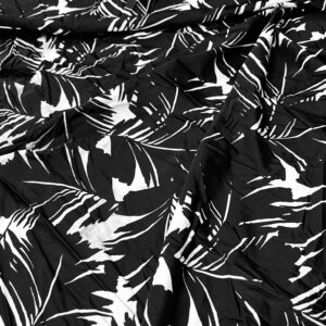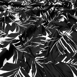 black Leaves white Background print Nylon Spandex Fabric 4 Way Stretch for swimwear dancewear gymwear sportwear dress skirt