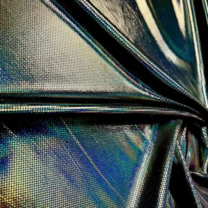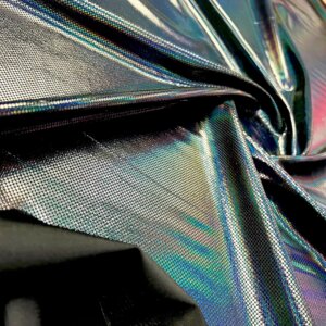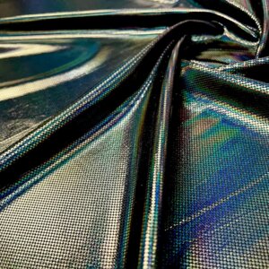 Black Mirror Hologram Iridescent Fabric Metallic Foil Reflection Nylon Lycra Spandex Fabric 4 Way Stretch By Yard for swimwear dancewear sportwear dress