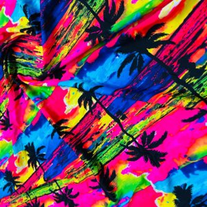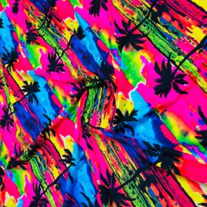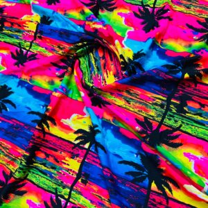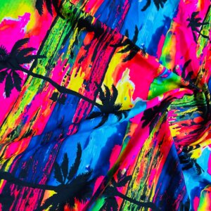 Black Palm Trees Multicolor Neon Background Print Nylon Lycra Spandex Fabric 4 Way Stretch By Yard for swimwear dancewear gymwear sportwear dress (203-7)