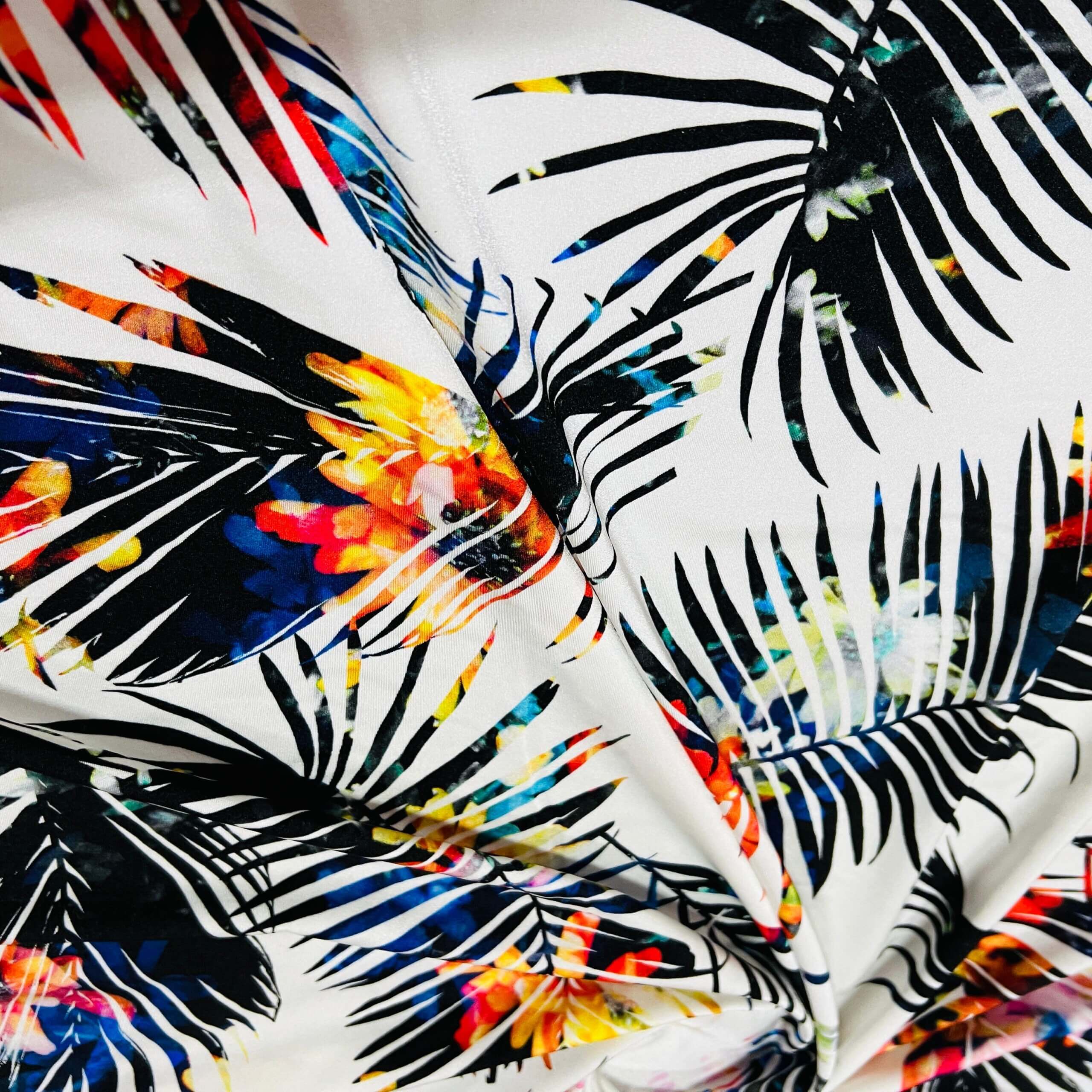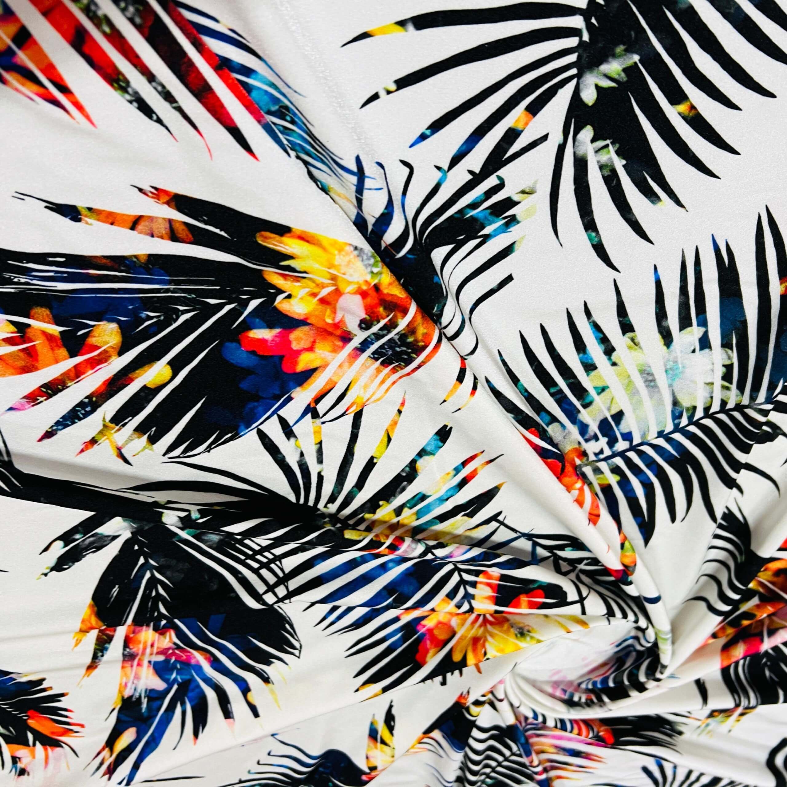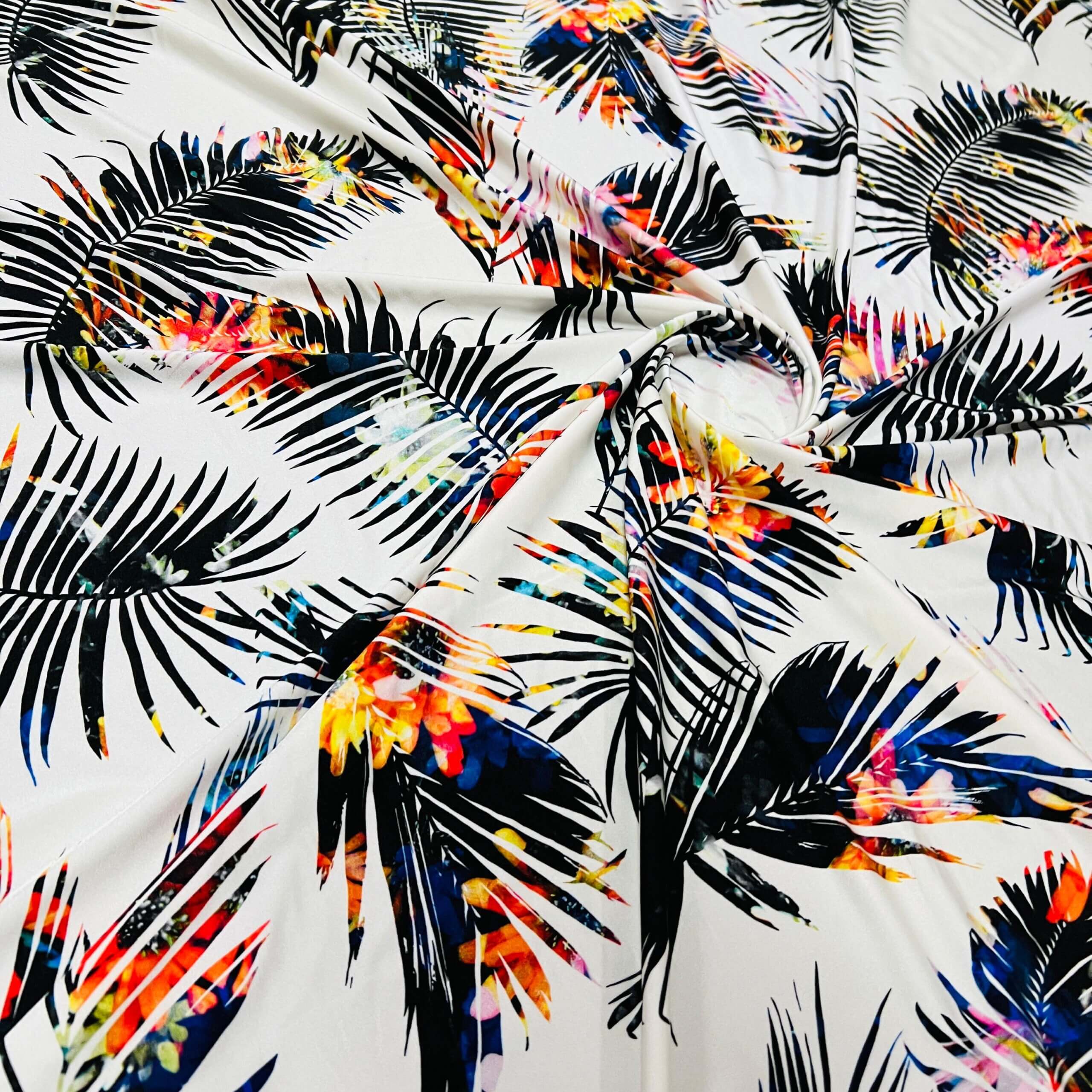 Black Palms with White Background print Nylon Lycra Spandex Fabric 4 Way Strech by Yard for swimwear dancewear dress gymwear