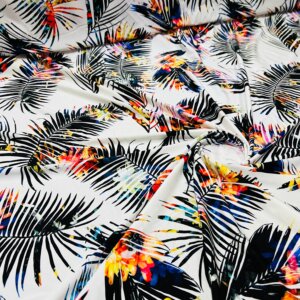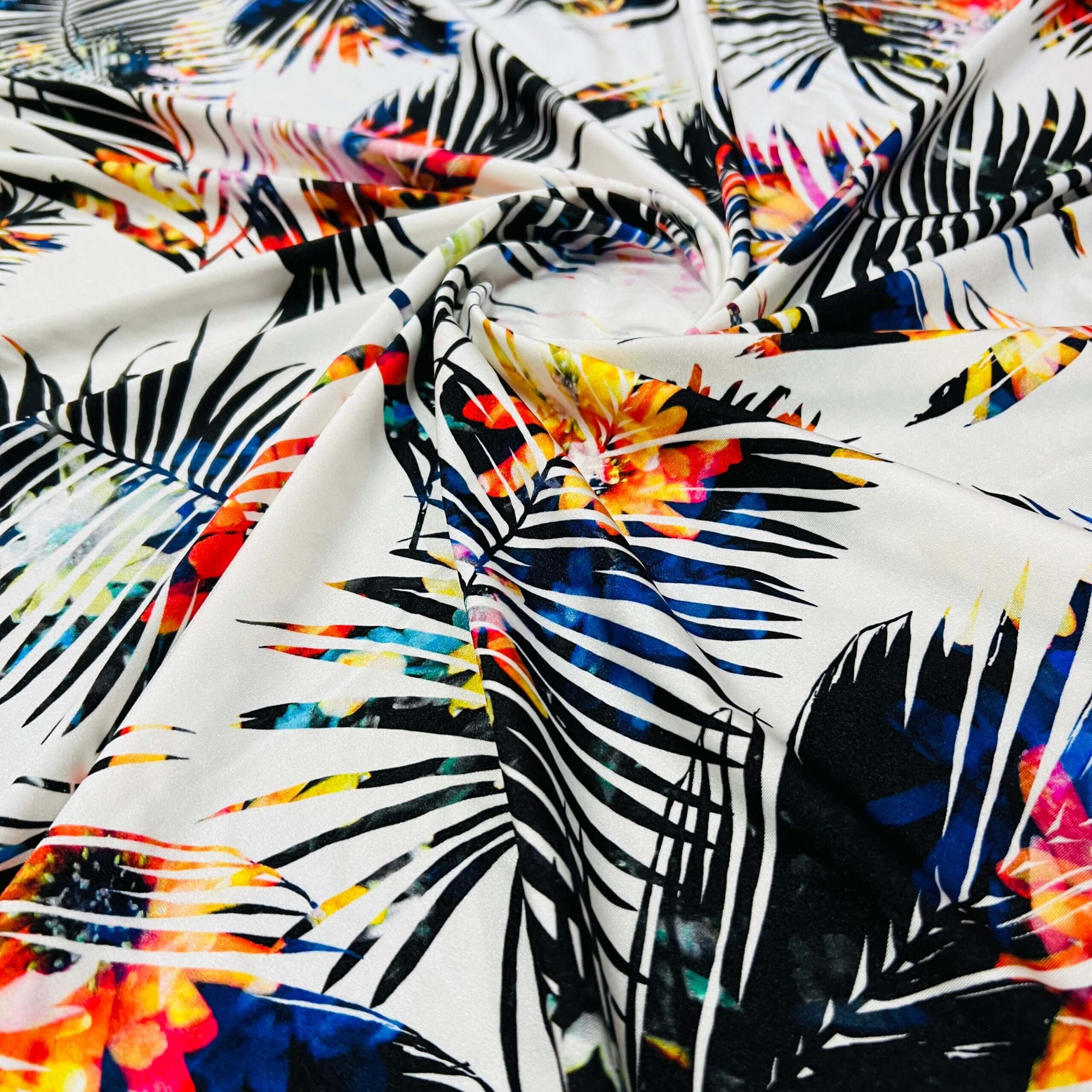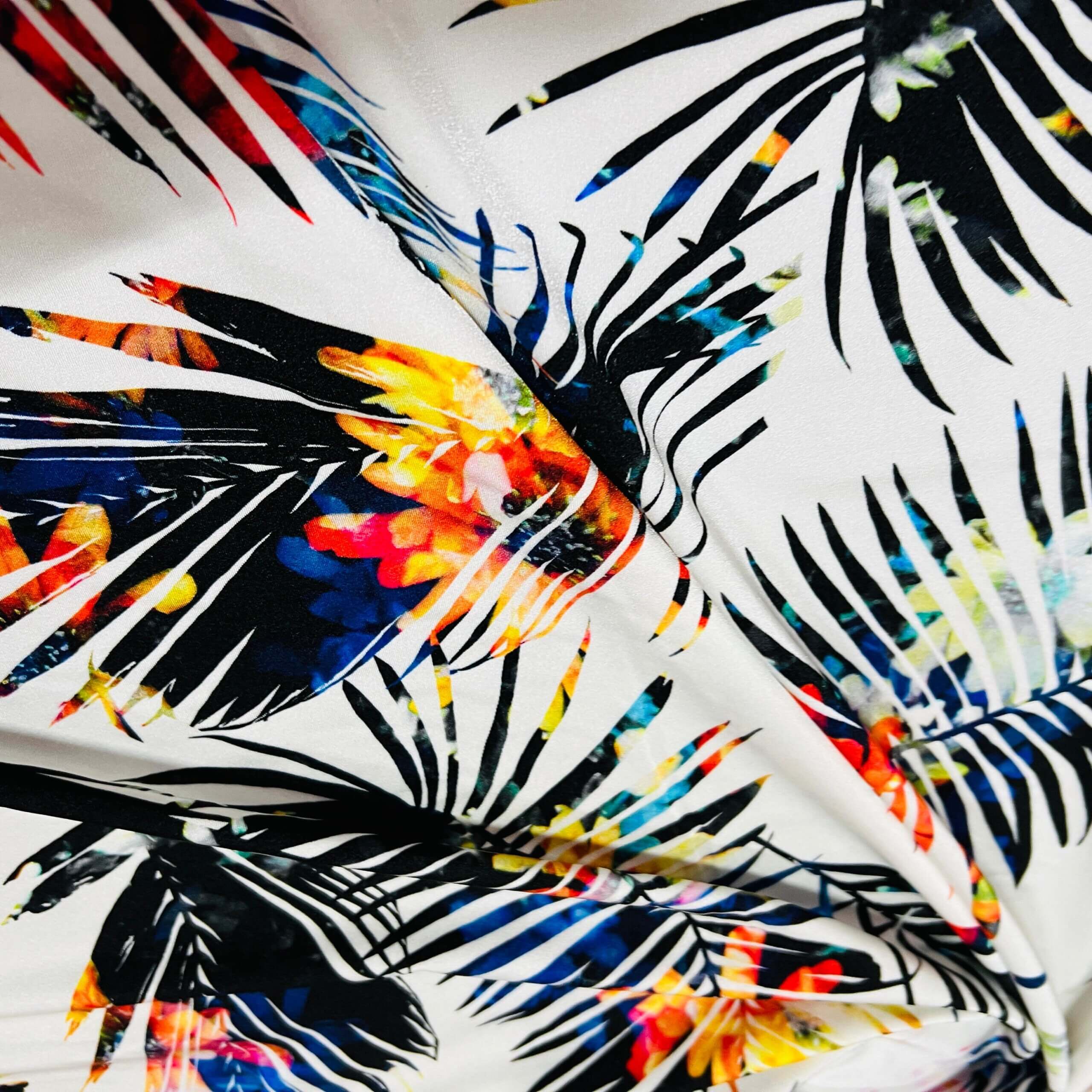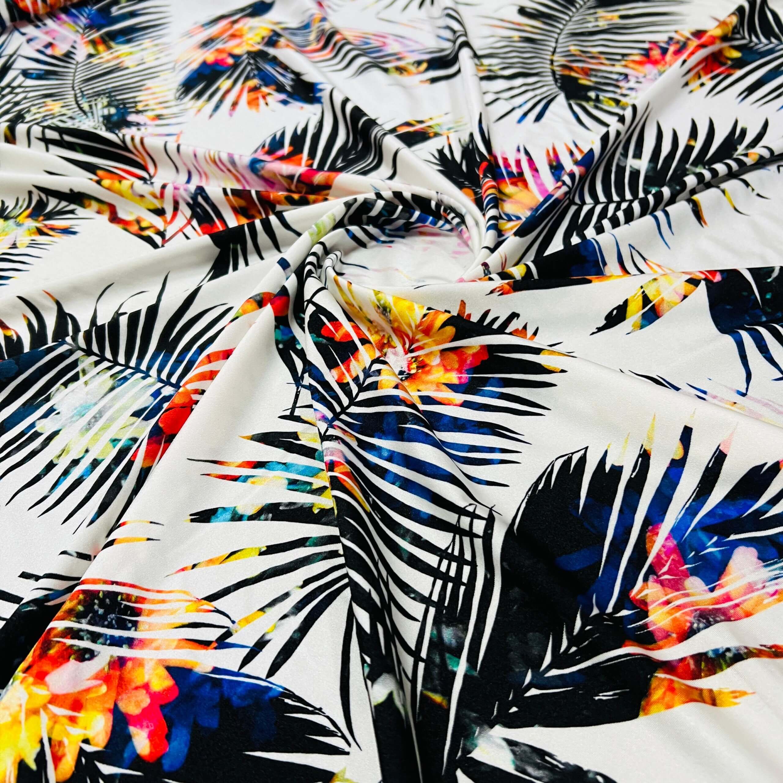 Black Palms with White Background print Nylon Lycra Spandex Fabric 4 Way Strech by Yard for swimwear dancewear dress gymwear