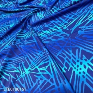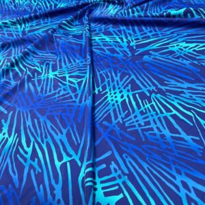 You are viewing Blue Abstract Print Nylon Spandex Fabric 4 Way Stretch By Yard for swimwear dancewear gymwear sportwear . Extremely beautiful print weight 200 to 220 GSM 80% Nylon 20% Spandex.