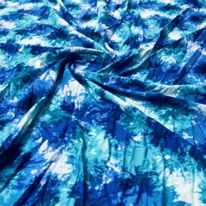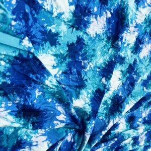 1 YD 18″ Long / blue Abstract tie dye white Background Print Nylon Lycra Spandex Fabric 4 Way Stretch By Yard for swimwear dancewear gymwear sportwear dress skirt