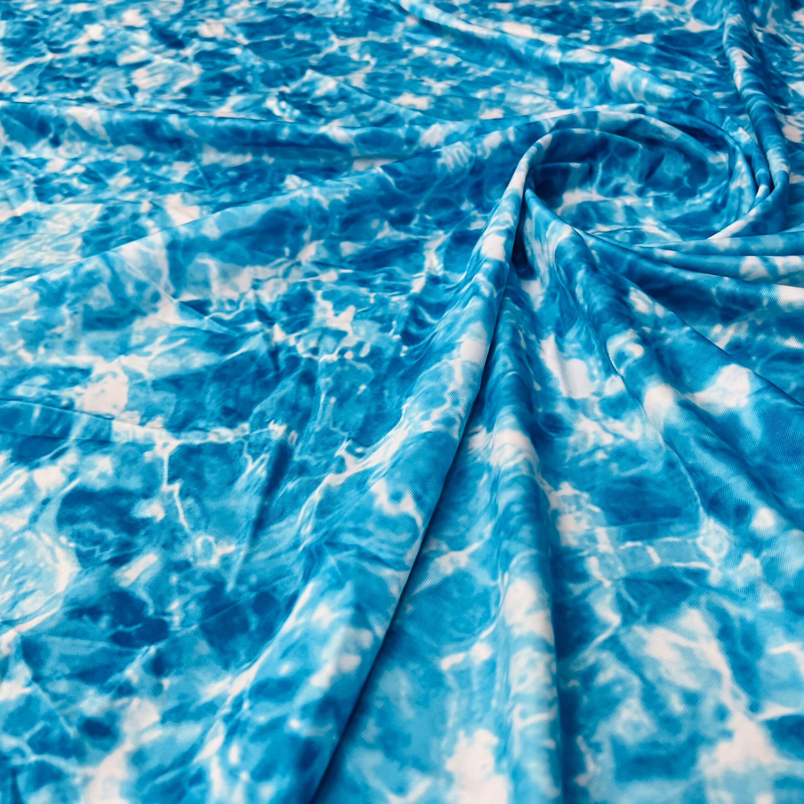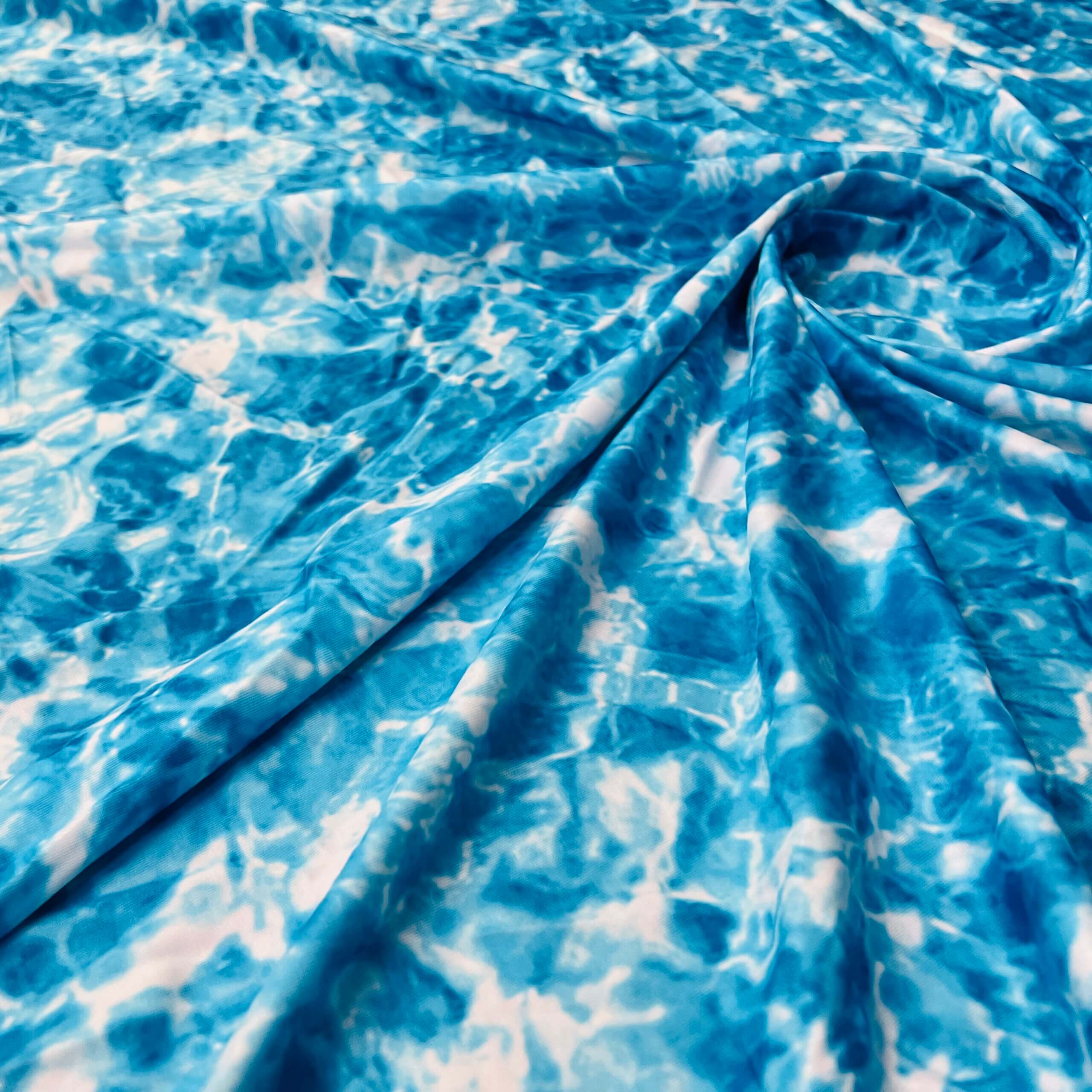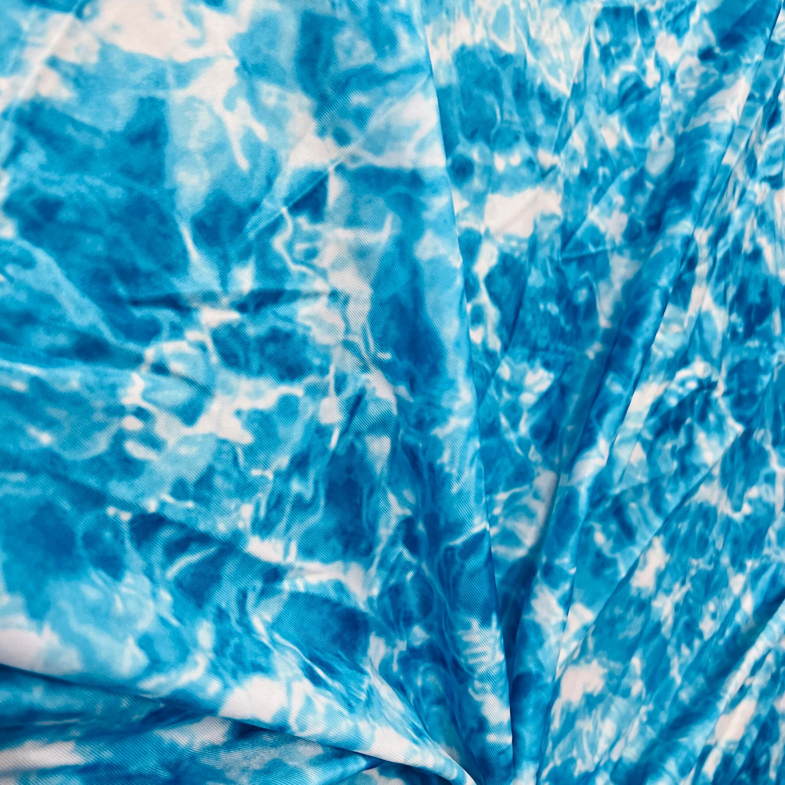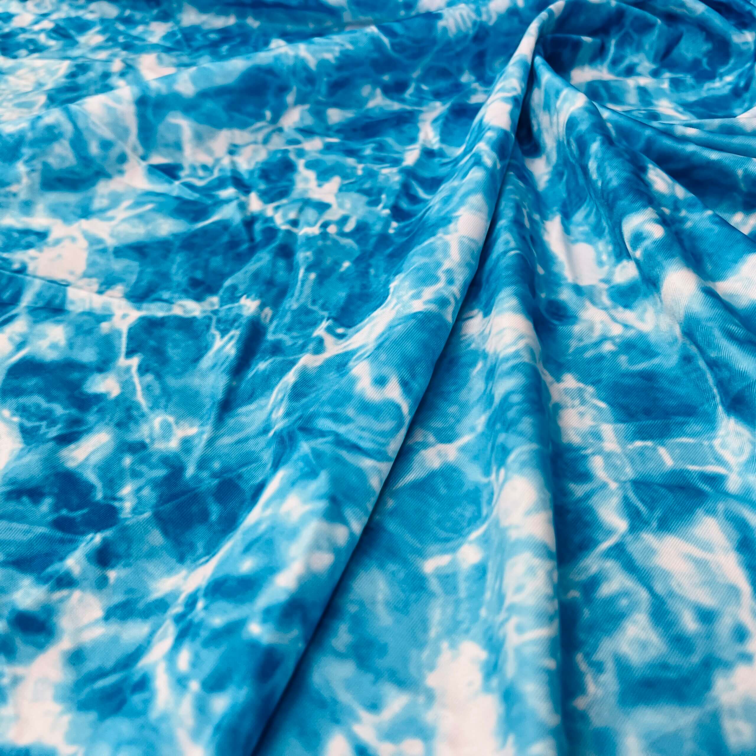 blue Abstract white Background Print Nylon Lycra Spandex Fabric 4 Way Stretch By Yard for swimwear dancewear gymwear sportwear dress skirt