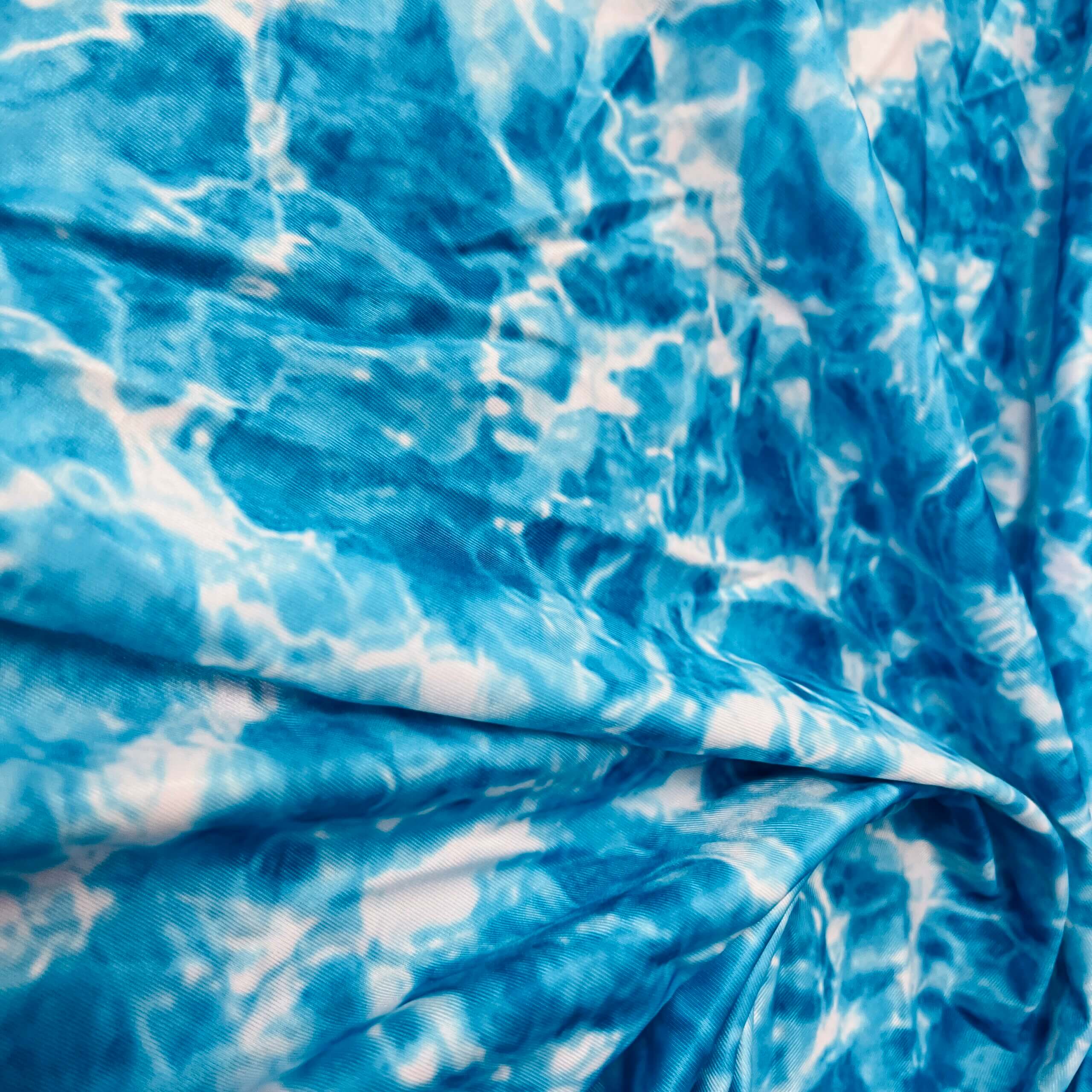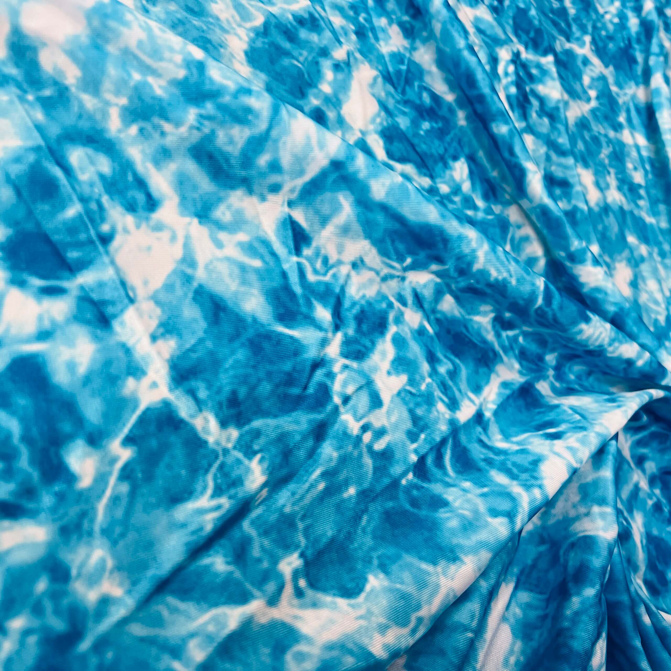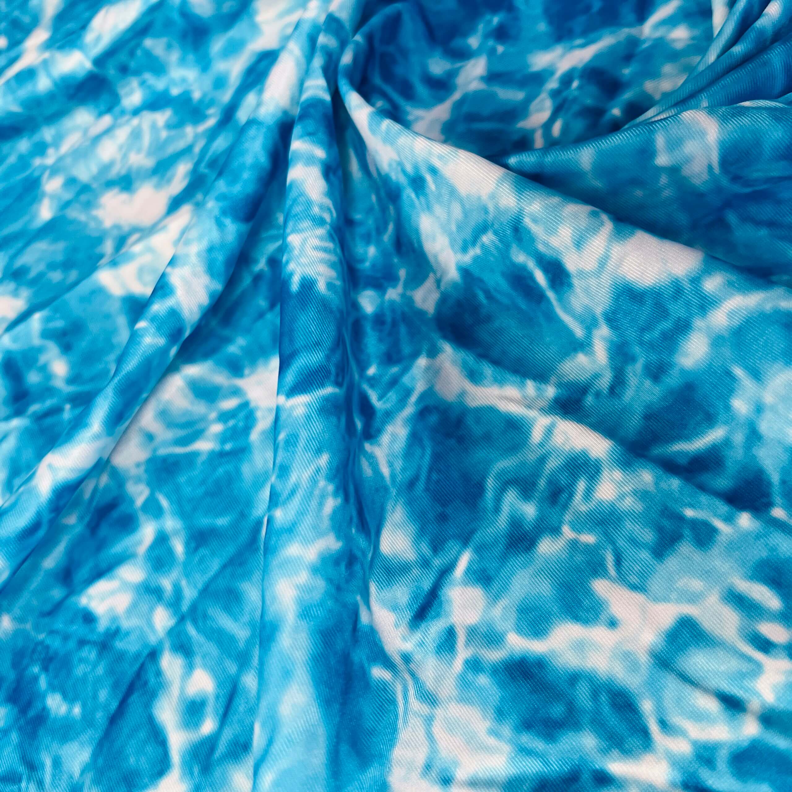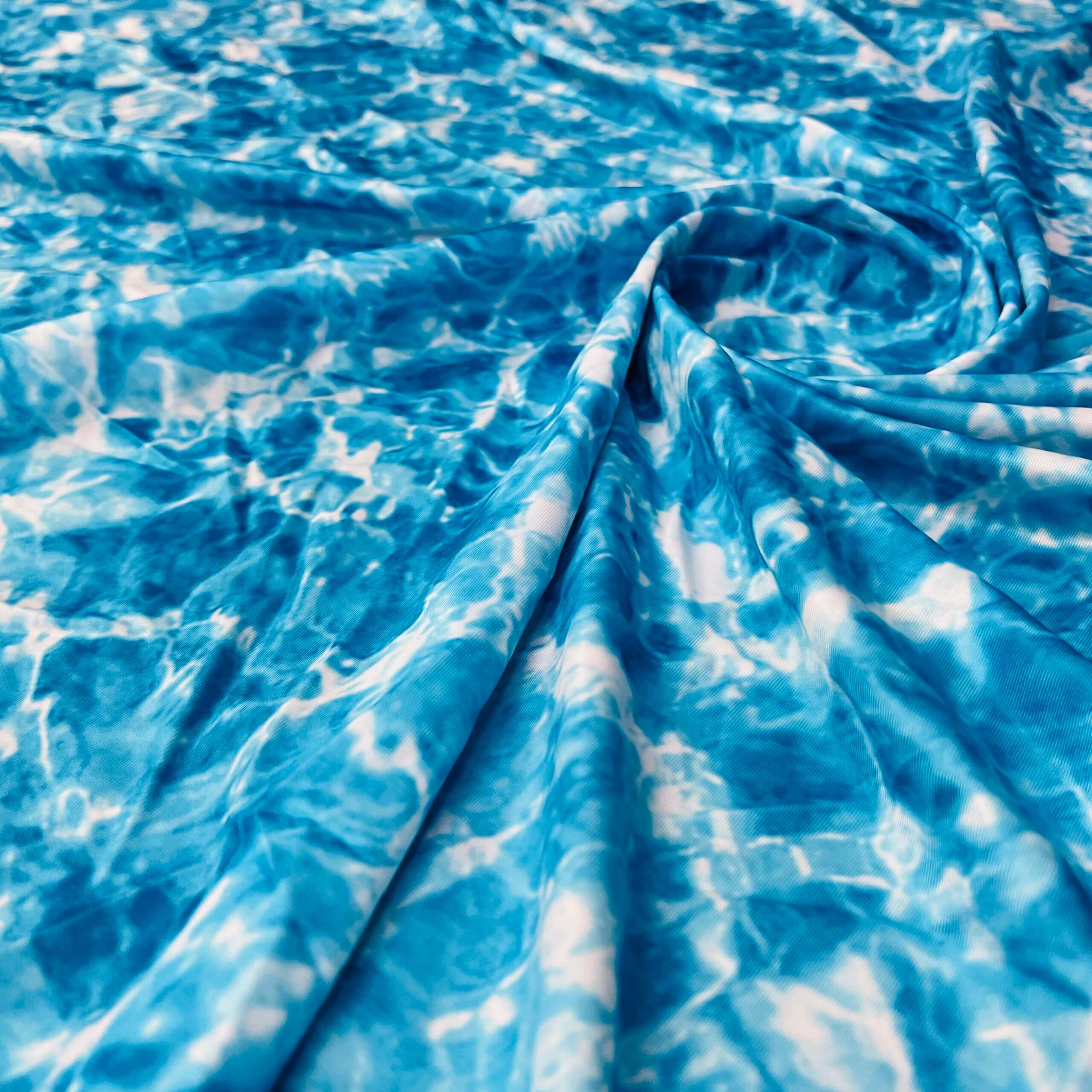 blue Abstract white Background Print Nylon Lycra Spandex Fabric 4 Way Stretch By Yard for swimwear dancewear gymwear sportwear dress skirt