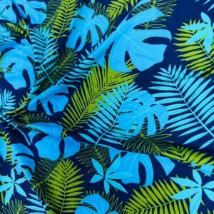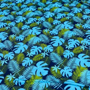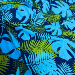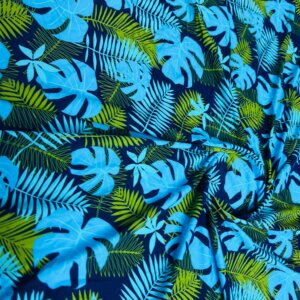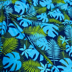 Blue and Green Leaves Print Nylon Lycra Spandex Fabric 4 Way Stretch By Yard for swimwear dancewear gymwear sportwear dress (203-4)