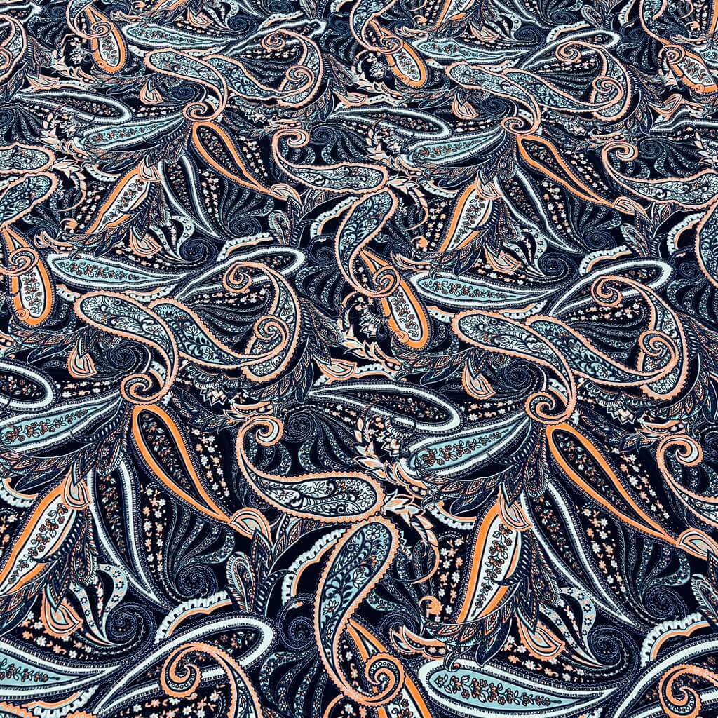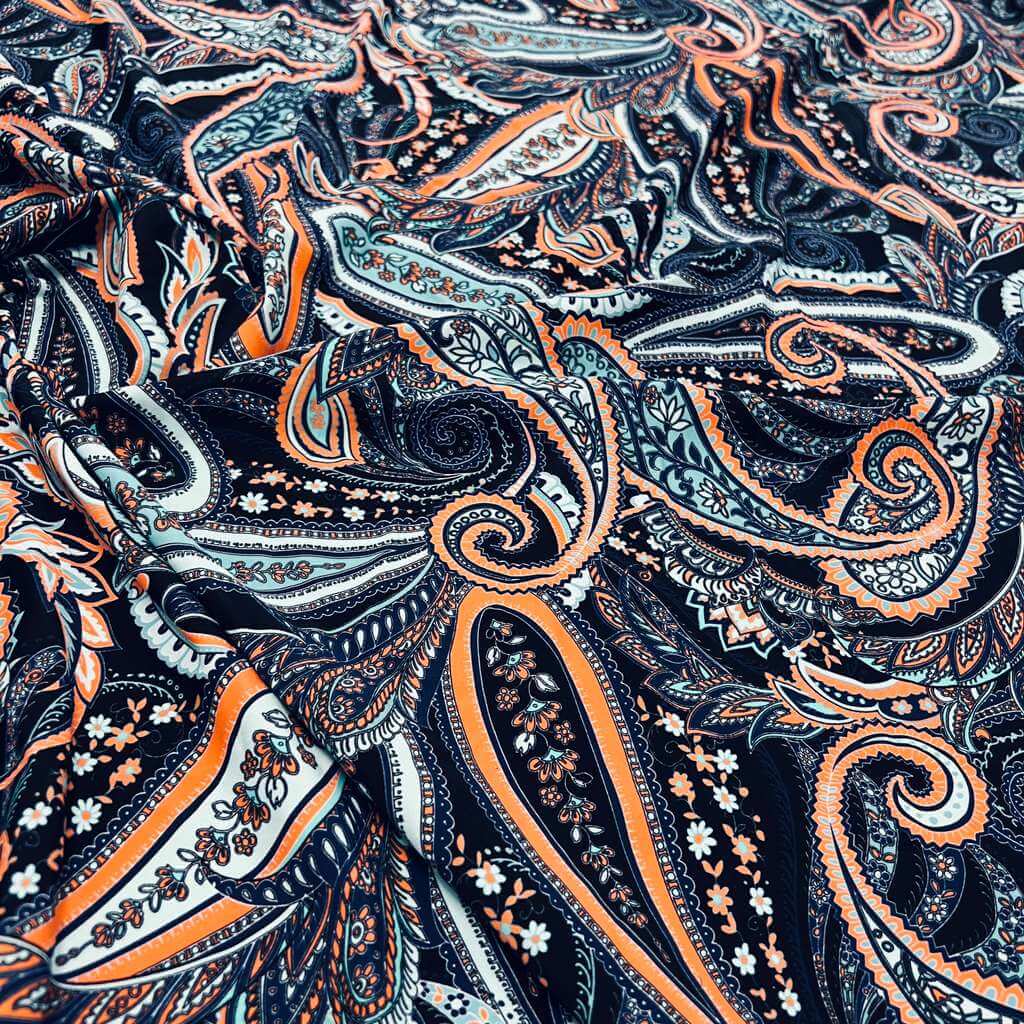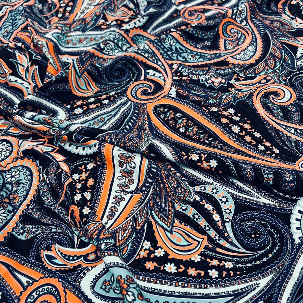 Blue and Orange Paisley Print Nylon Spandex Fabric 4 Way Stretch for swimwear dancewear gymwear sportwear dress skirt (204-4)(21)