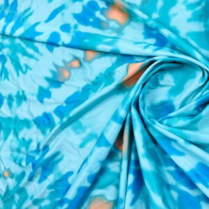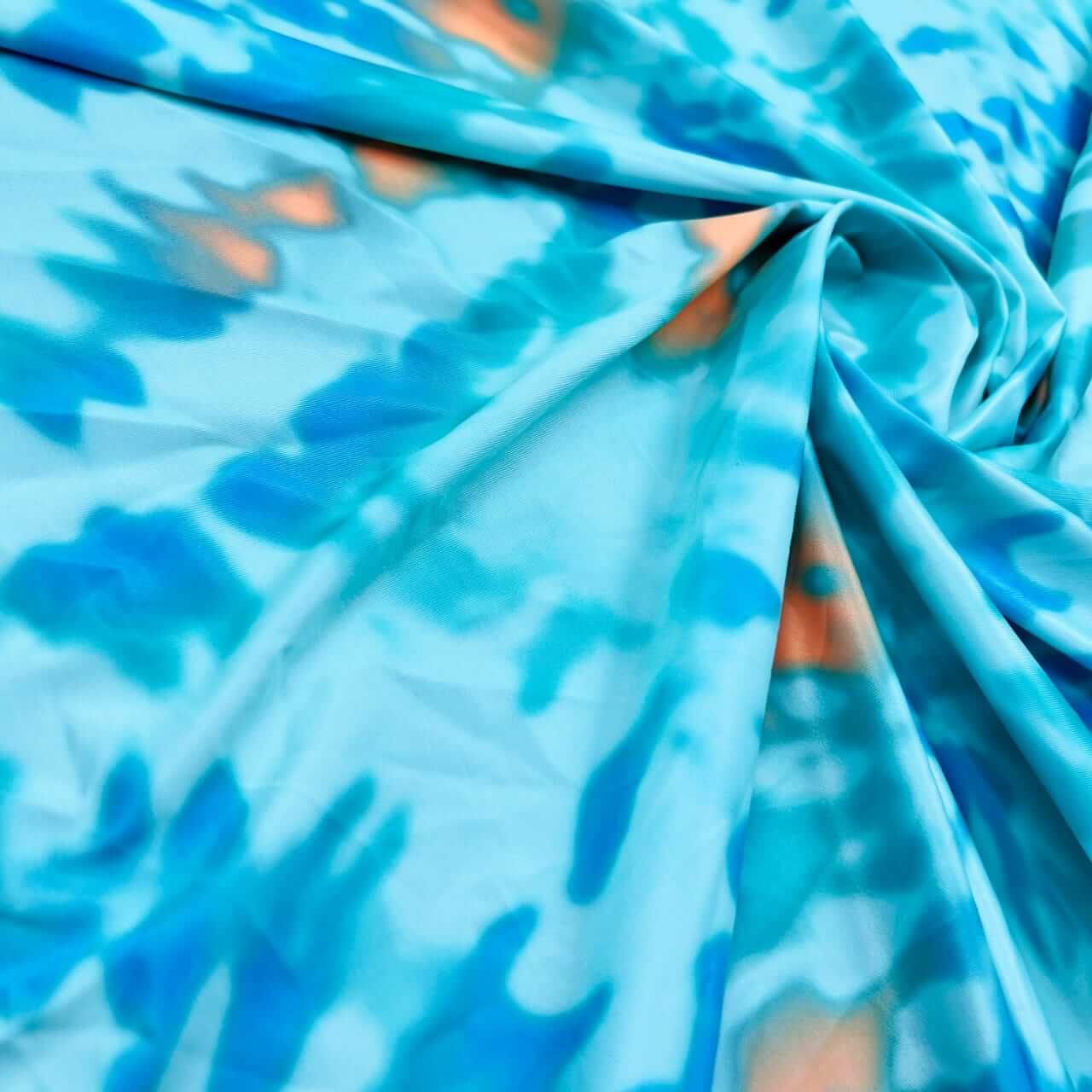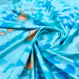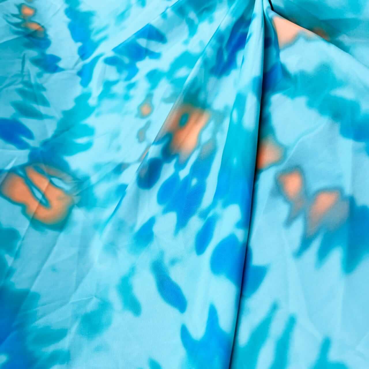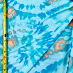 You are viewing Blue and Orange Tie Dye Print Nylon Spandex Fabric 4 Way Stretch By Yard for swimwear dancewear gymwear sportwear dress skirt