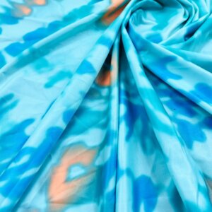 You are viewing Blue and Orange Tie Dye Print Nylon Spandex Fabric 4 Way Stretch By Yard for swimwear dancewear gymwear sportwear dress skirt