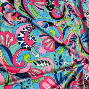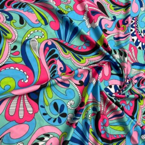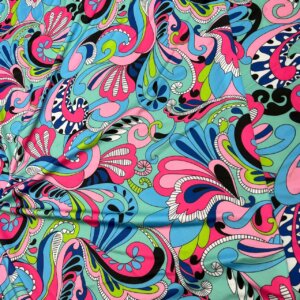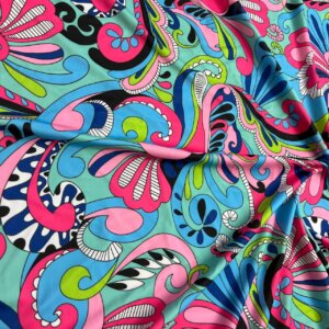 Blue and Pink Paisley blue background Print Nylon Lycra Spandex Fabric 4 Way Stretch By Yard for swimwear dancewear gymwear sportwear dress (203-4)