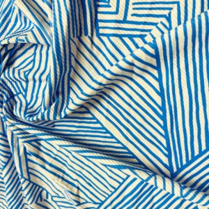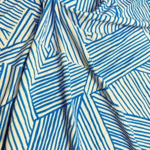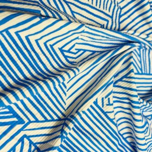 Blue and White Geometric Stripes Print Nylon lycra Ribbed Spandex Fabric 4 Way Stretch By Yard for swimwear dancewear gymwear sportwear dress skirt