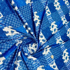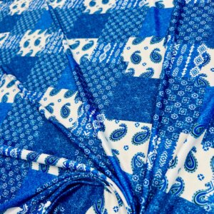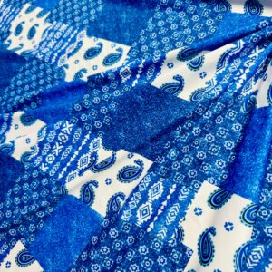 Blue and White Paisley Print Nylon Lycra Spandex Fabric 4 Way Stretch By Yard for swimwear dancewear gymwear sportwear dress (203-7)