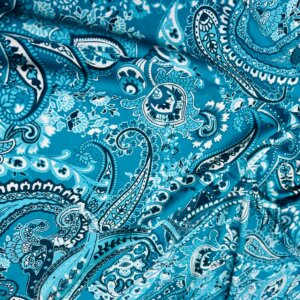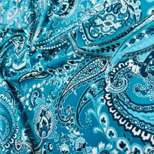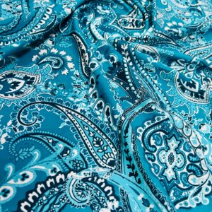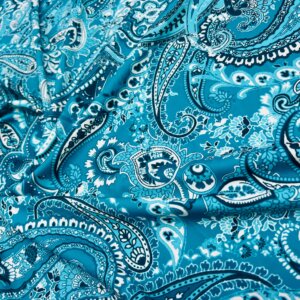 Blue and White Paisley Print Nylon Lycra Spandex Fabric 4 Way Stretch By Yard for swimwear dancewear gymwear sportwear dress skirt (239-12)