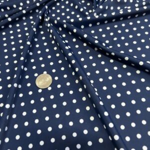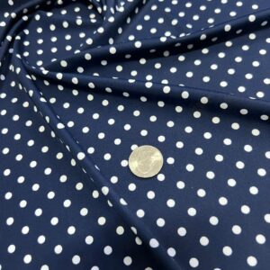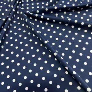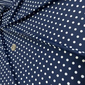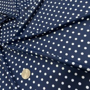 Blue and White Polka Dots Print Nylon Lycra Spandex Fabric 4 Way Stretch By Yard for Swimwear (243-3)