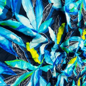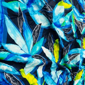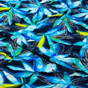 Blue Flowers and Leaves Print Nylon Lycra Spandex Fabric 4 Way Stretch By Yard for swimwear dancewear gymwear sportwear dress (239-9)
