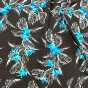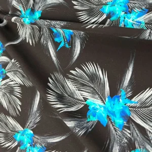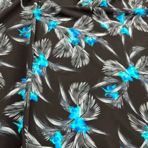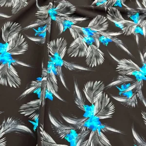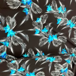 Blue Flowers Black background Print Nylon Spandex Fabric 4 Way Stretch By Yard for swimwear dancewear gymwear sportwear dress skirt (239-9)