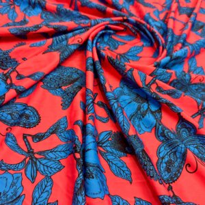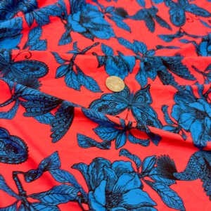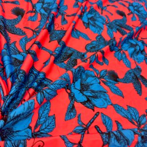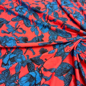 Blue Flowers Coral Background Print Nylon Lycra Spandex Fabric 4 Way Stretch By Yard for swimwear dancewear gymwear sportwear dress (203-11)