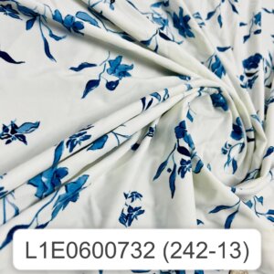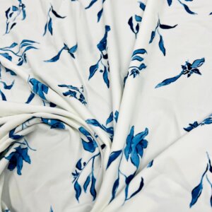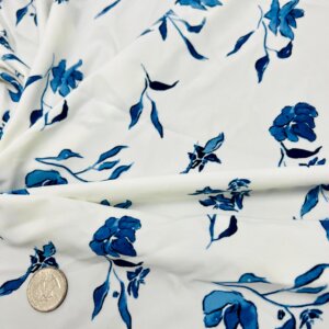 Blue Flowers White Background Print Nylon Lycra Spandex Fabric 4 Way Stretch By Yard for swimwear dancewear gymwear sportwear dress (157-13)