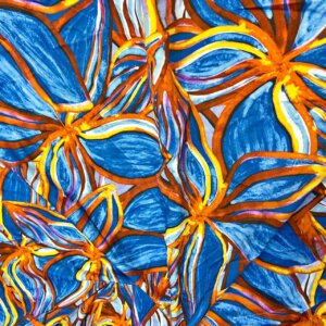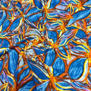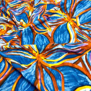 Blue Flowers with Orange Print Nylon Lycra Spandex Fabric 4 Way Stretch By Yard for swimwear dancewear gymwear sportwear dress (242-2)