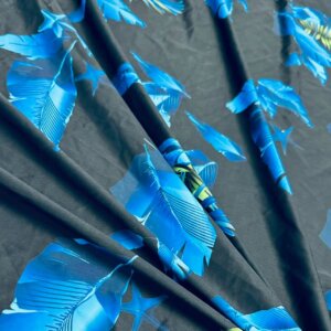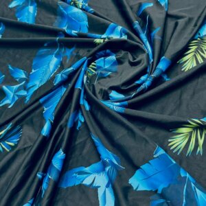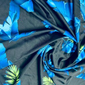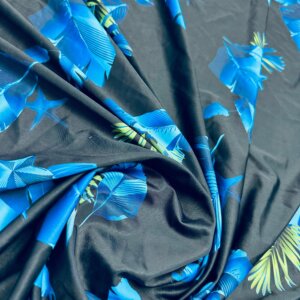 Blue Leaves Black background Print Nylon Lycra Spandex Fabric 4 Way Stretch By Yard for swimwear dancewear gymwear sportwear dress (203-11)