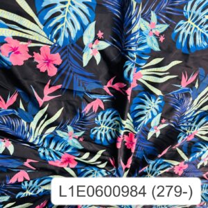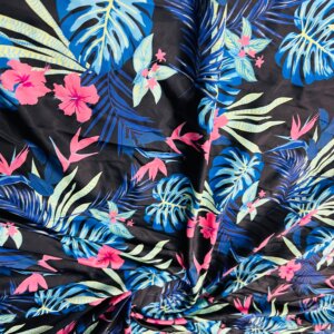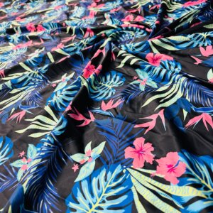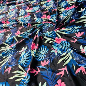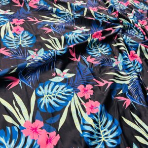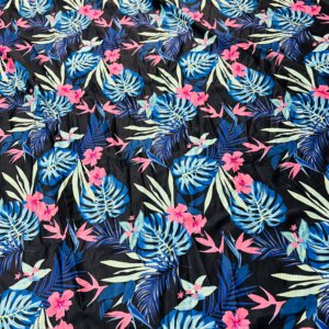 blue Leaves black Background print Nylon Spandex Fabric 4 Way Stretch for swimwear dancewear gymwear sportwear dress skirt (279-)