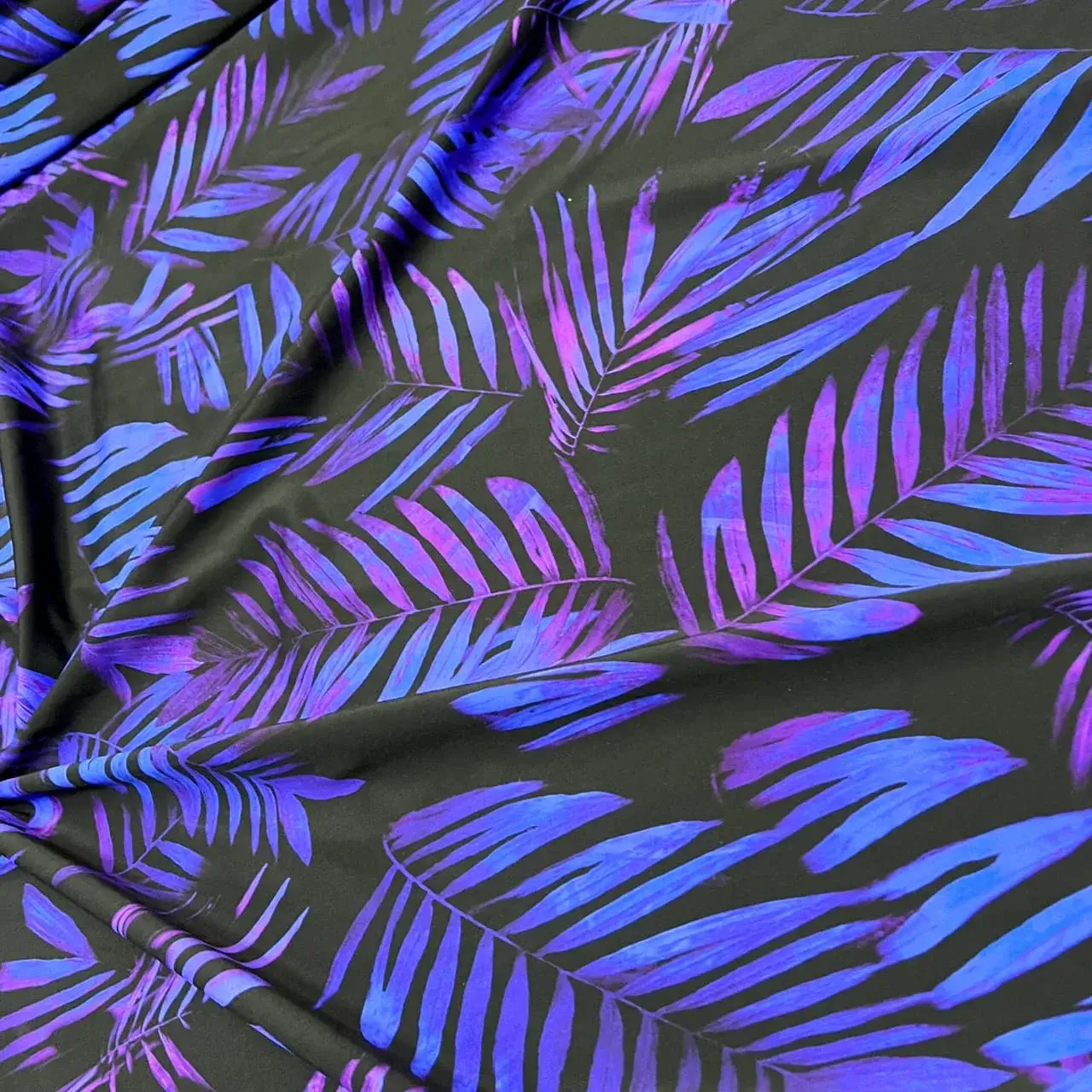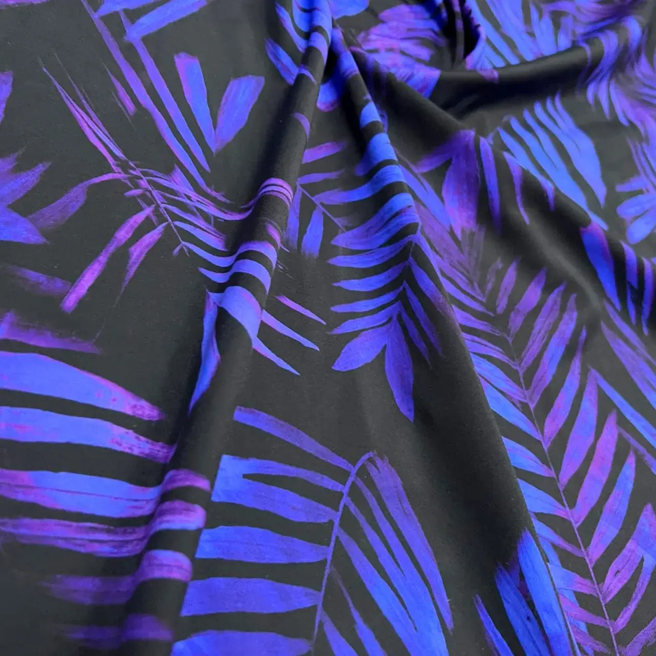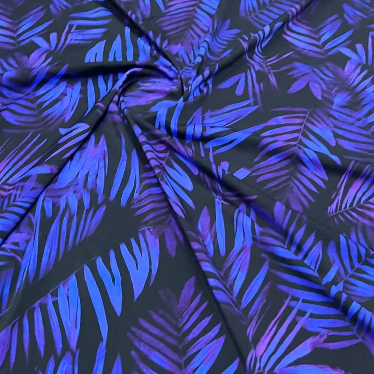 Purple Leaves Print Nylon Lycra Spandex fabric four way Stretch by Yard for swimwear dancewear dress gymwear (243-6)