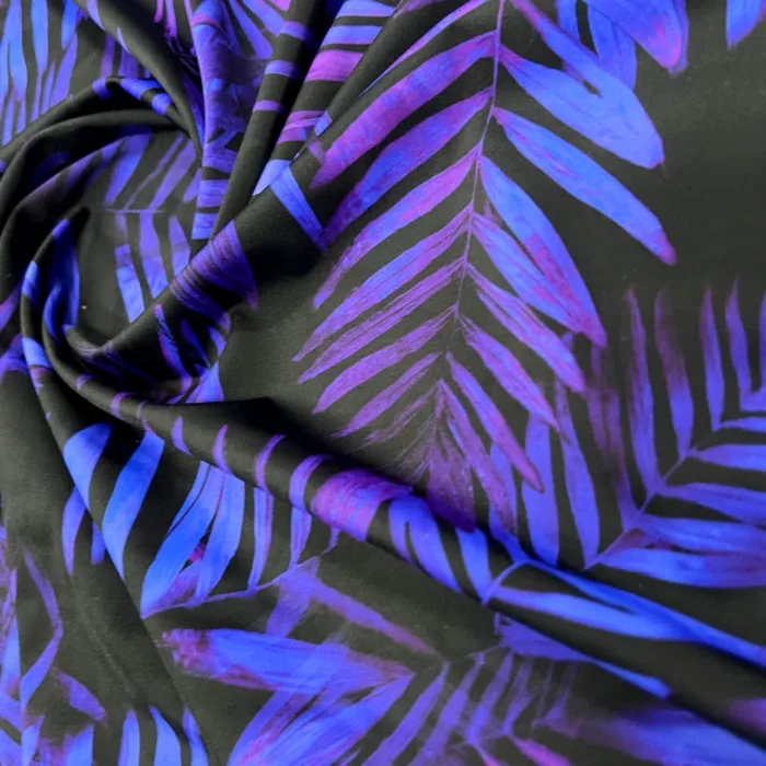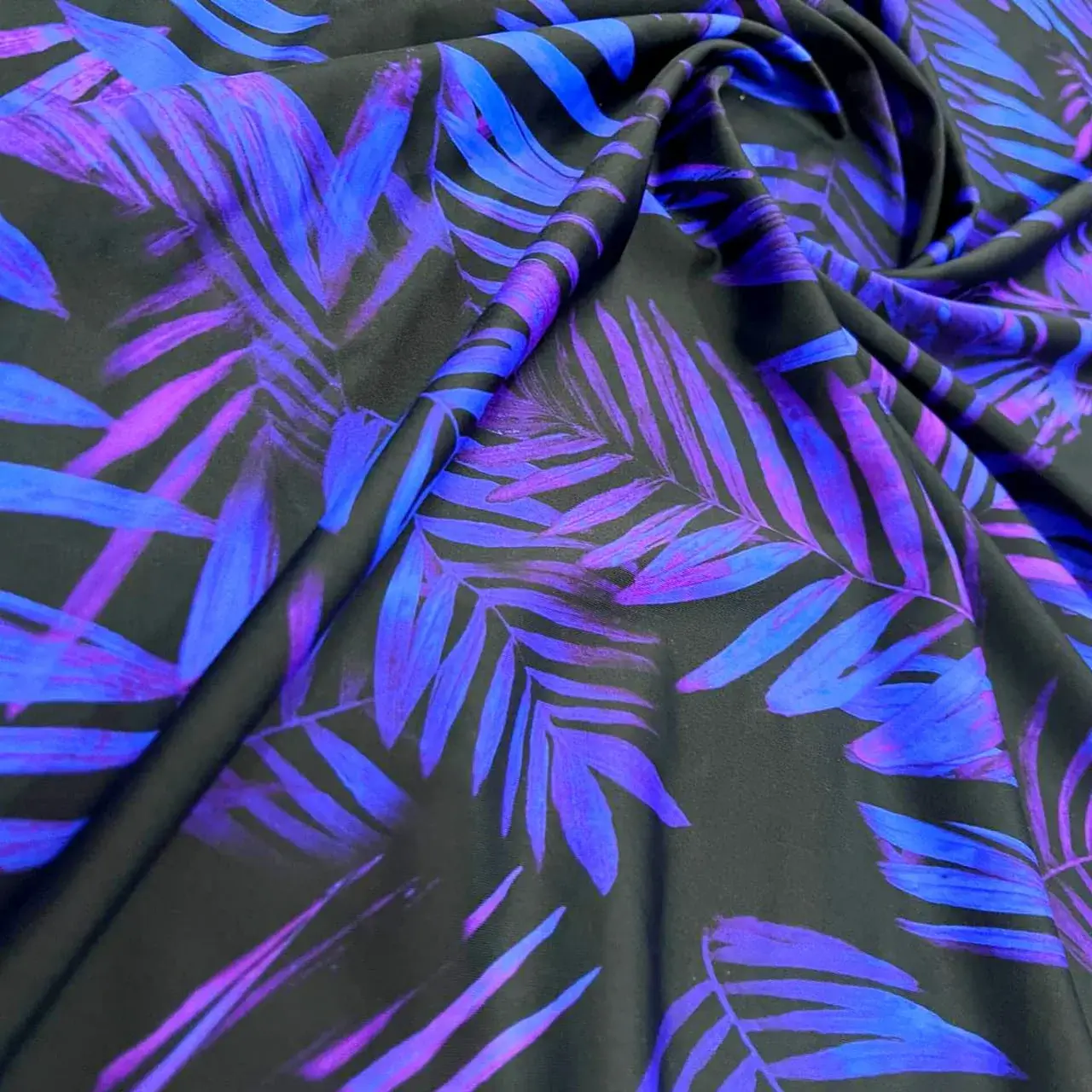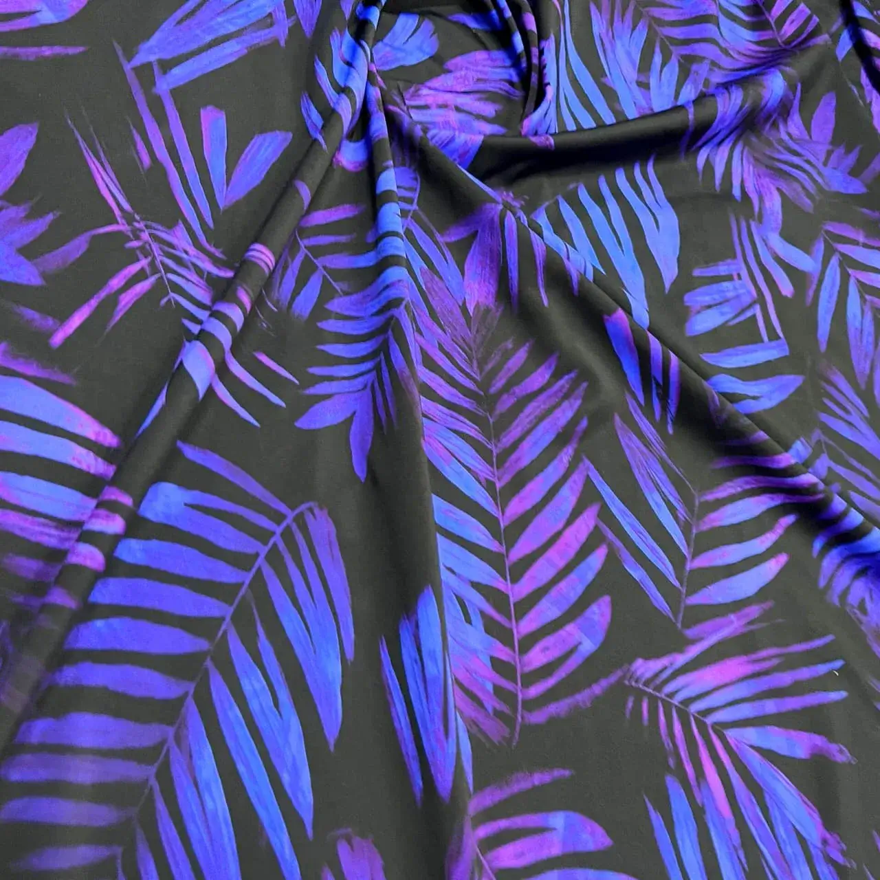 Purple Leaves Print Nylon Lycra Spandex fabric four way Stretch by Yard for swimwear dancewear dress gymwear (243-6)
