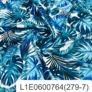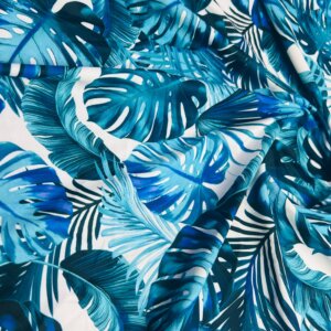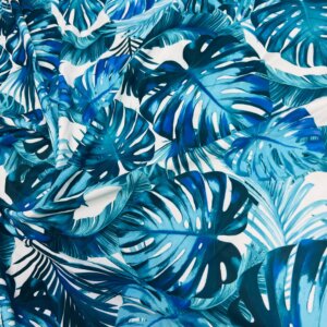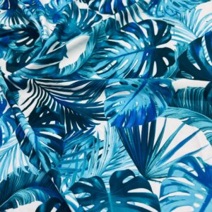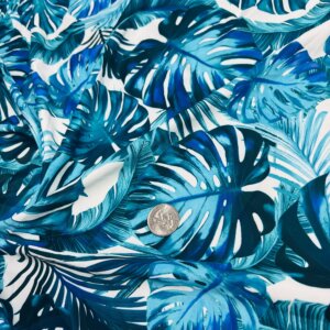 Blue Leaves White Background Print Nylon Lycra Spandex Fabric 4 Way Stretch By Yard for swimwear dancewear gymwear sportwear dress (279-7)
