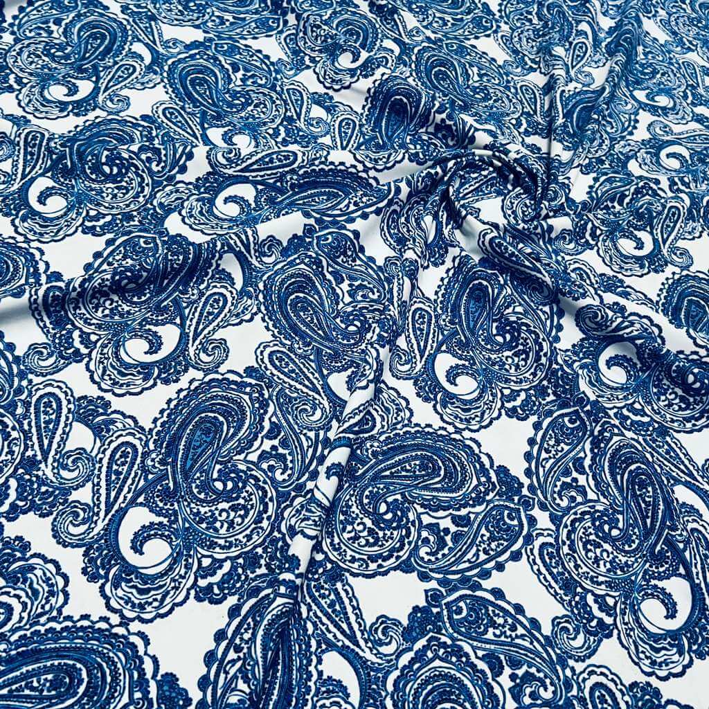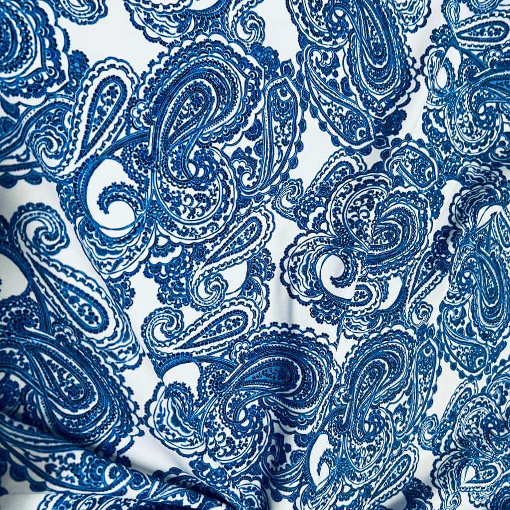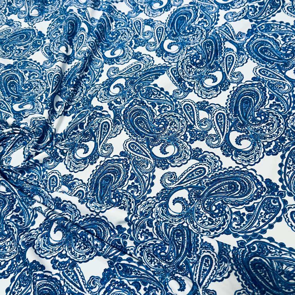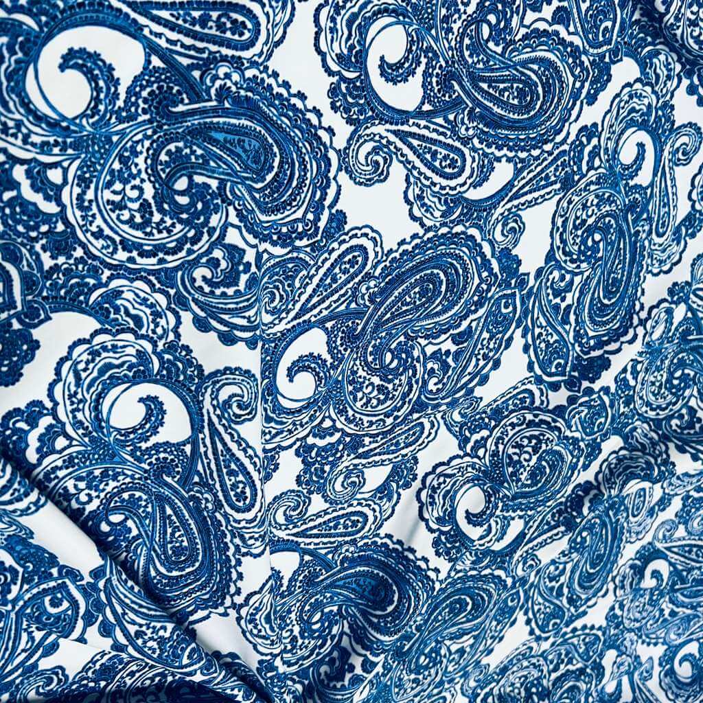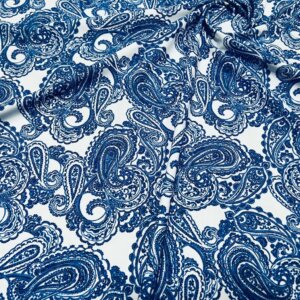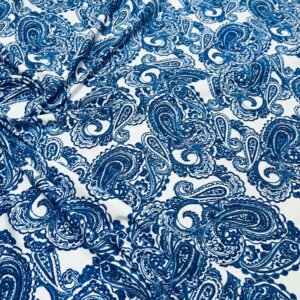 Blue Paisley with White Background Print Nylon Spandex Fabric 4 Way Stretch for swimwear dancewear gymwear sportwear dress skirt