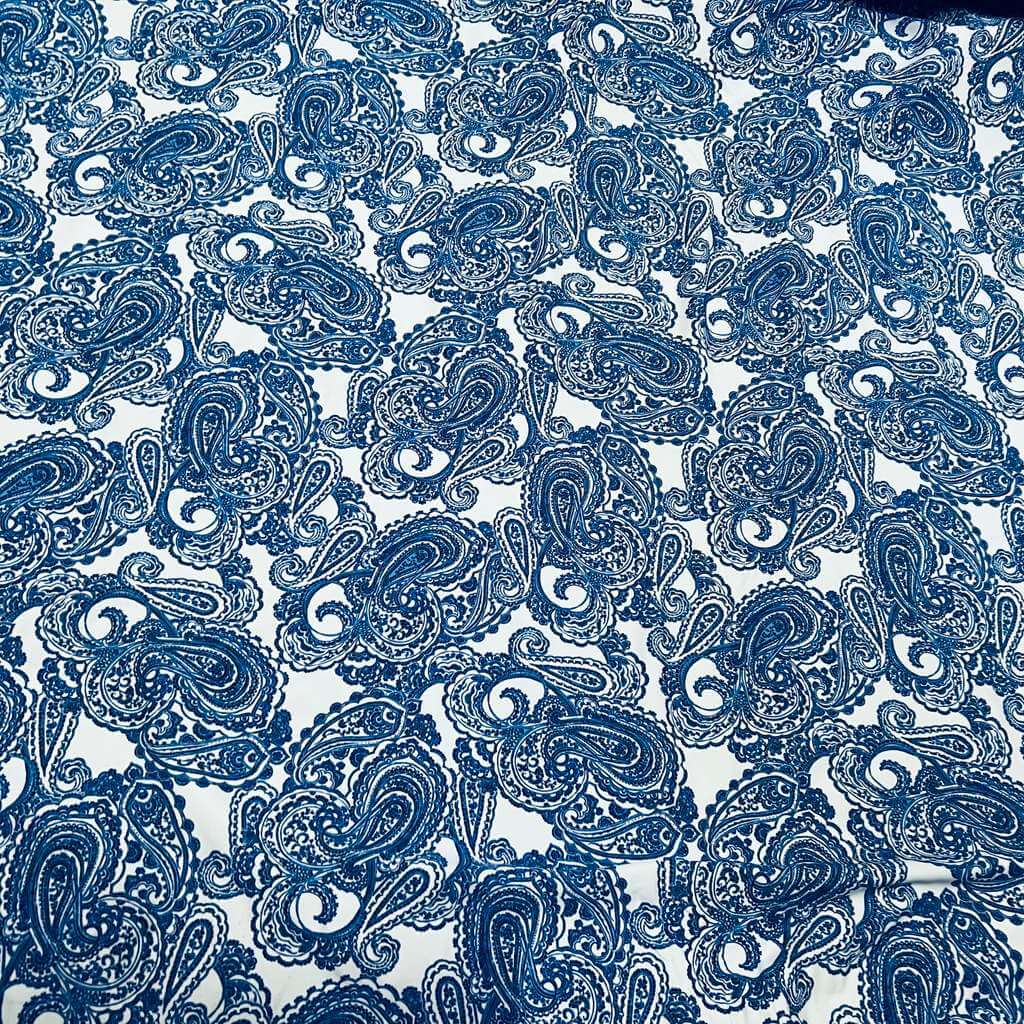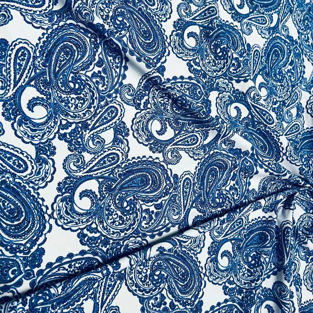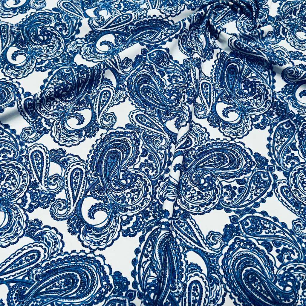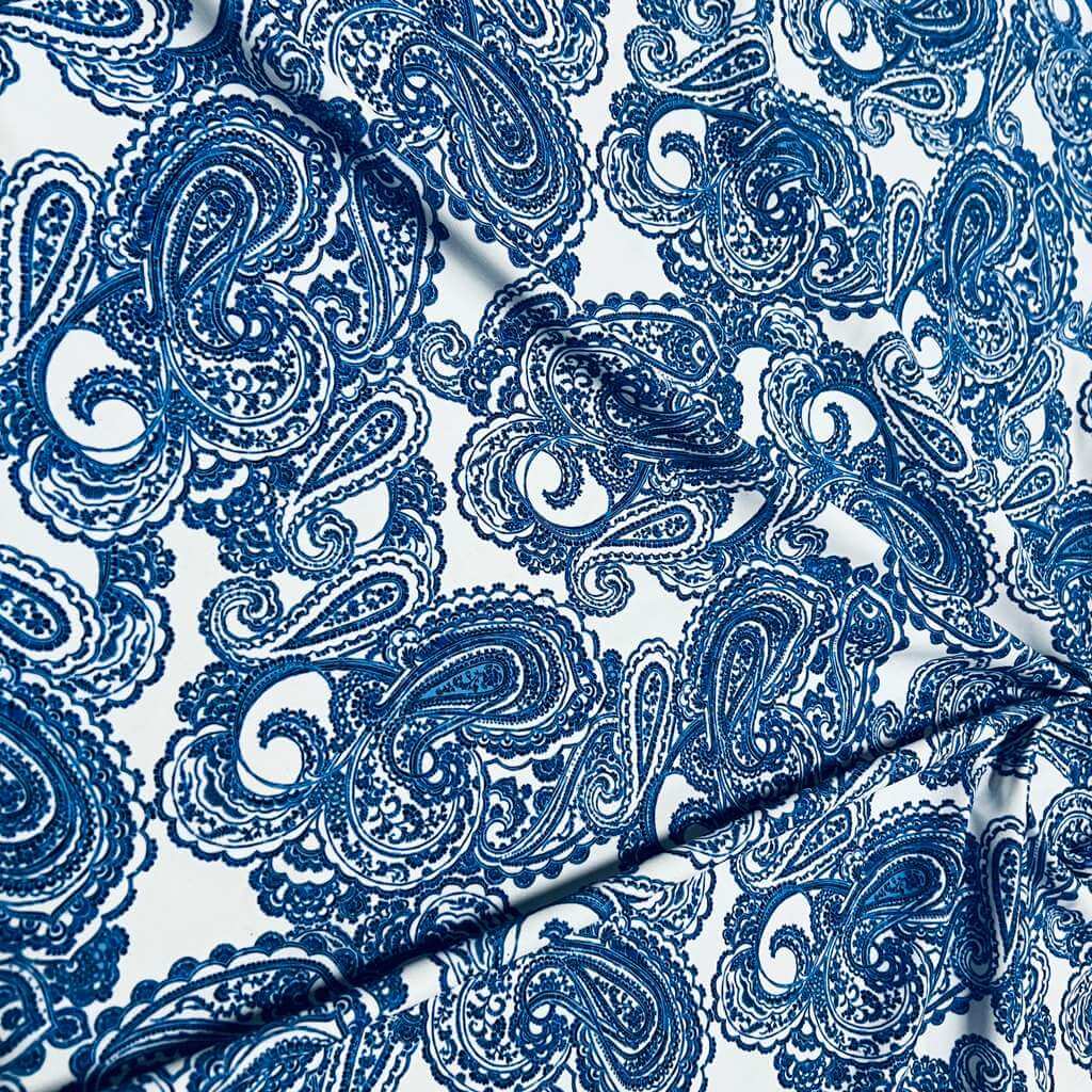Blue Paisley with White Background Print Nylon Spandex Fabric 4 Way Stretch for swimwear dancewear gymwear sportwear dress skirt