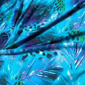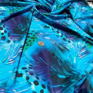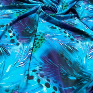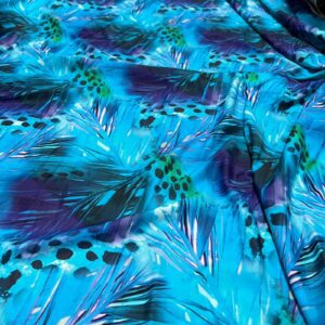 Blue Peacock Print Nylon Lycra Spandex Fabric 4 Way Strech by Yard for swimwear dancewear dress gymwear (243-2)