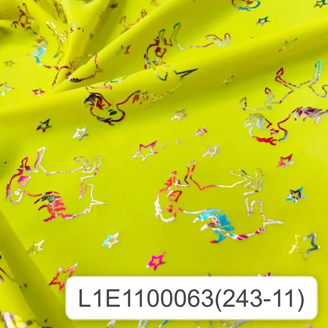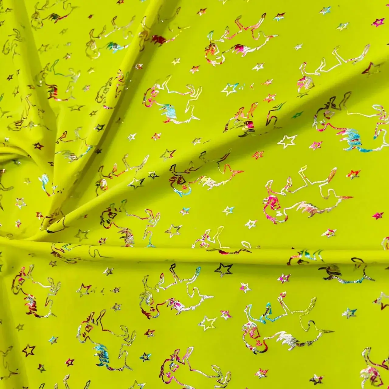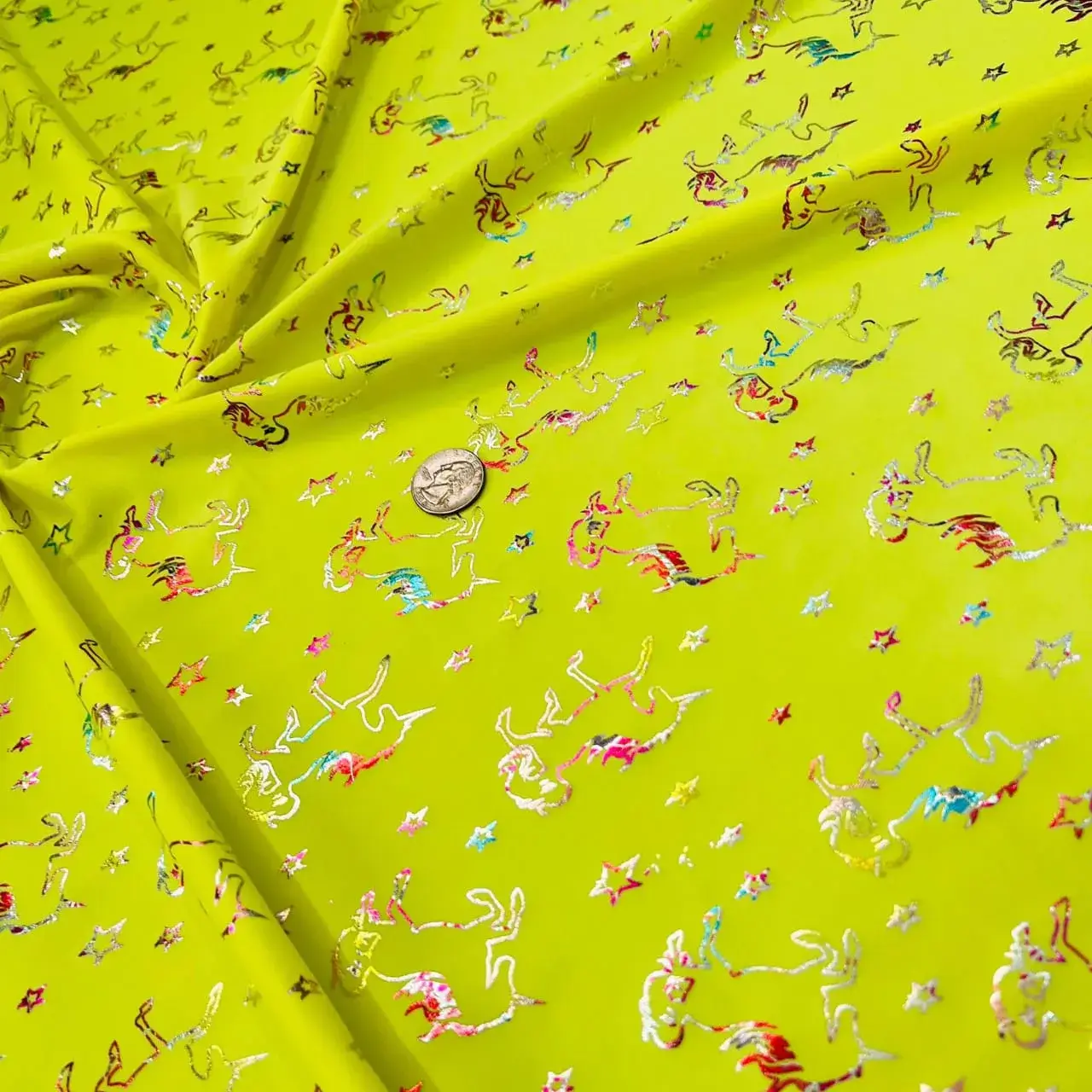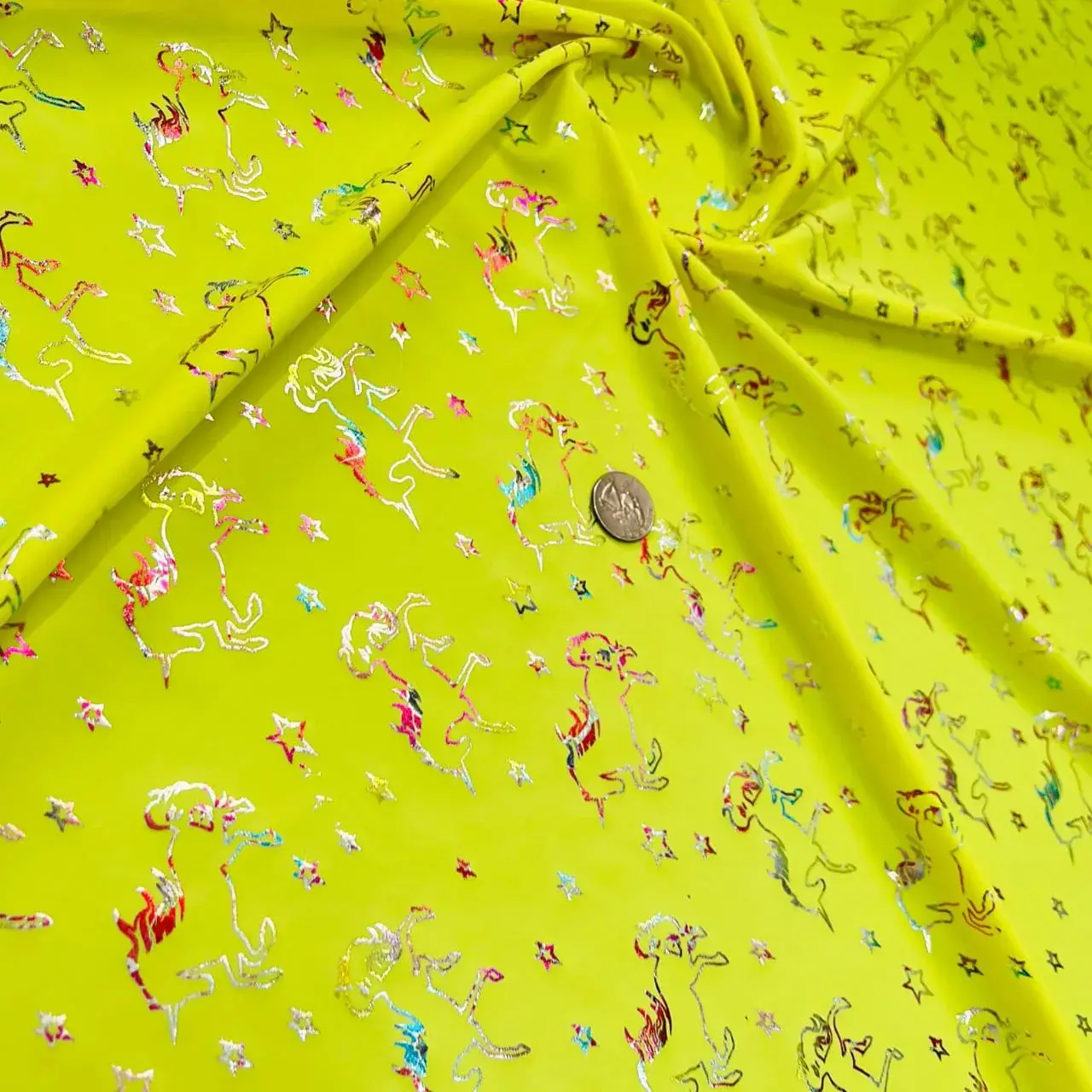 Bright Unicorns with Baby Yellow background Print Nylon Lycra Spandex fabric four way Stretch by Yard
